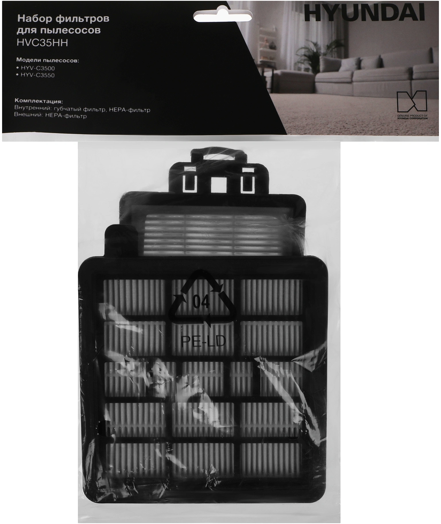 Набор фильтров Hyundai HVC35HH представляет собой комплект из трех фильтров, специально разработанных для использования с пылесосами моделей Hyundai HYV-C3500/HYV-C3550. Внутренний фильтр представляет собой комбинацию губчатого фильтра предварительной очистки и HEPA-фильтра, работающих в тандеме. Губчатая часть задерживает крупный мусор, пыль и волокна. HEPA-фильтр, находящийся внутри, удаляет более мелкие частицы. Использование HEPA-фильтра существенно продлевает срок службы пылесоса, предотвращая засорение внутренних механизмов и обеспечивая максимальную мощность всасывания.