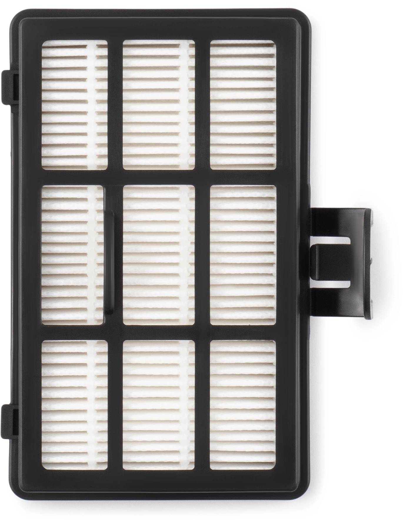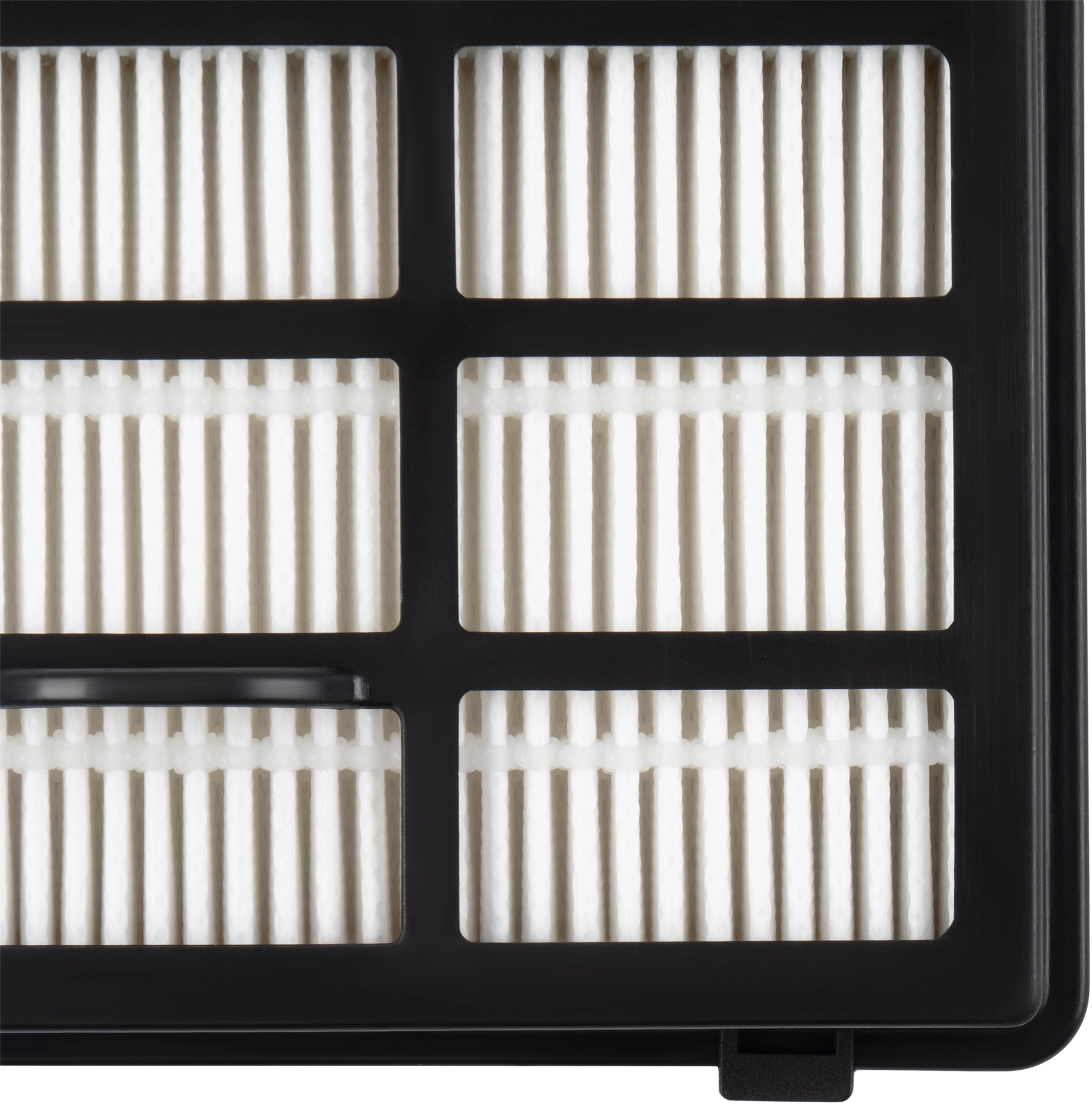 Внешний HEPA-фильтр тонкой очистки выполнен из свернутого в несколько раз волокнистого материала, способного задерживать до 99,97% частиц размером от 0,3 микрона. Обеспечивает фильтрацию даже мельчайших частиц, аллергенов и других вредных веществ, существенно улучшая качество воздуха в помещении.