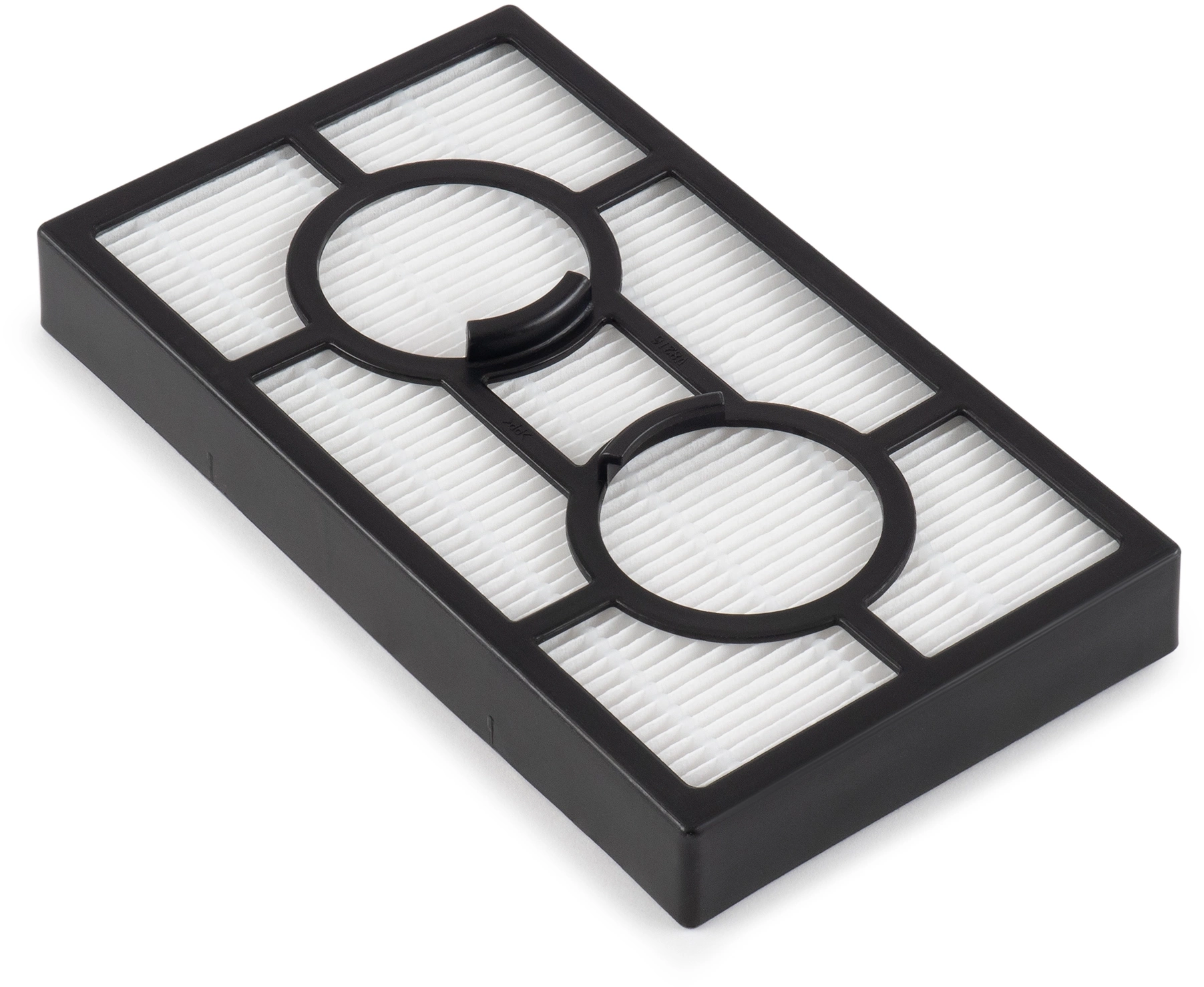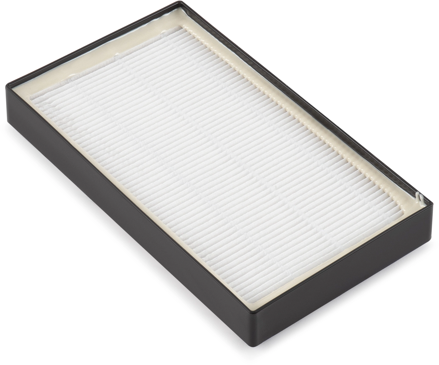Внешний HEPA-фильтр тонкой очистки выполнен из волокнистого материала, сложенного гармошкой. Пластиковый корпус поддерживает нужную форму. Устанавливается в месте выхода воздуха наружу из пылесоса обеспечивая максимально возможное очищение. Волокна захватывают частицы размером от 0,3 микрона. В помещении после уборки сохраняется чистый воздух, свободный от аллергенов, пыли, пыльцы и других вредных веществ.