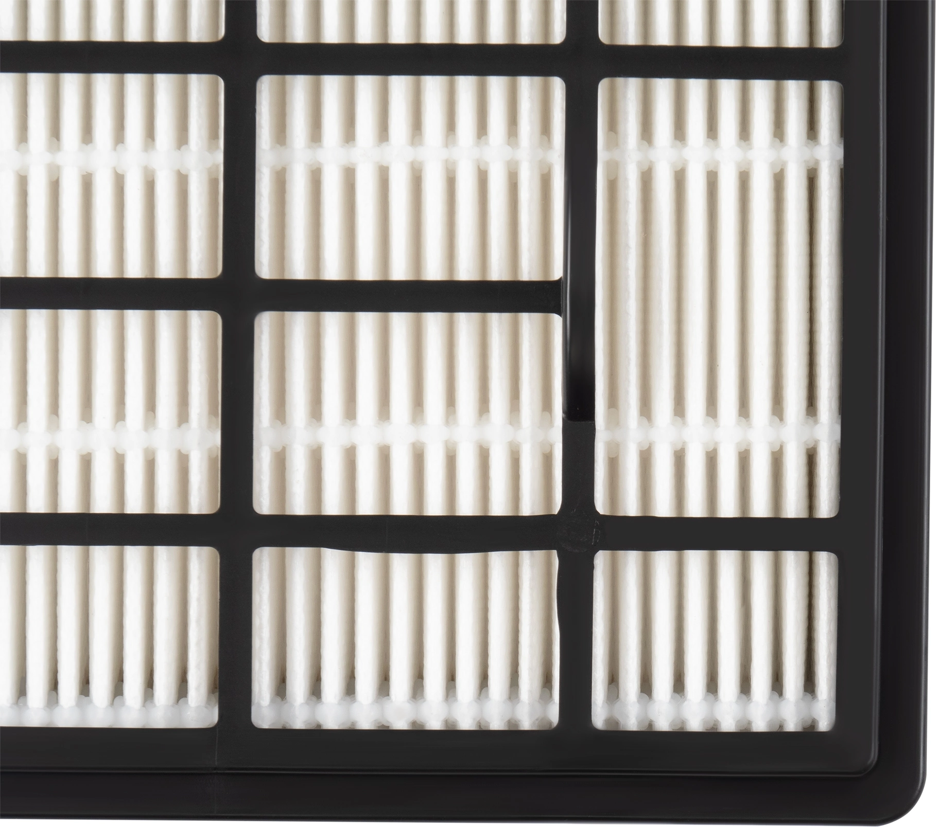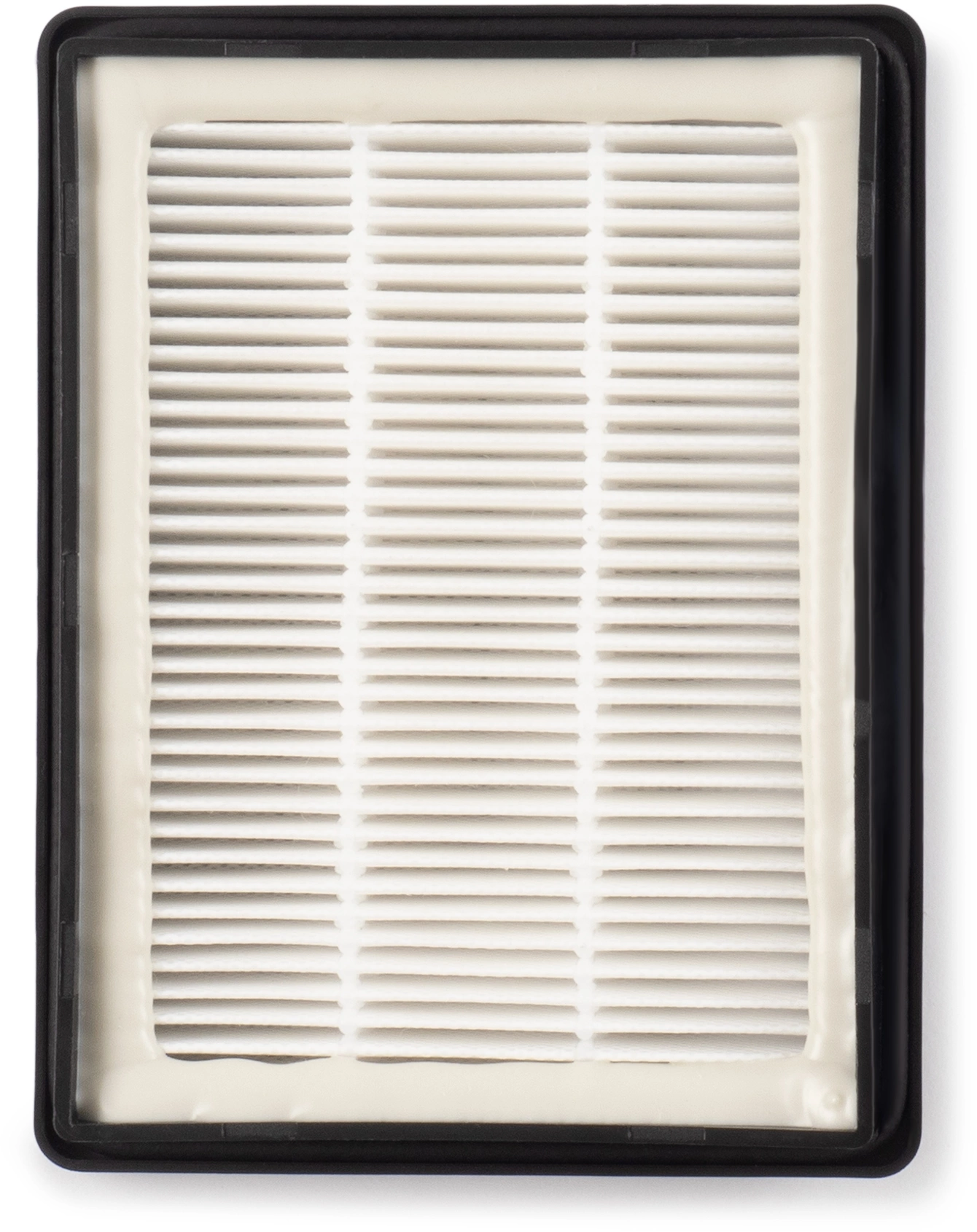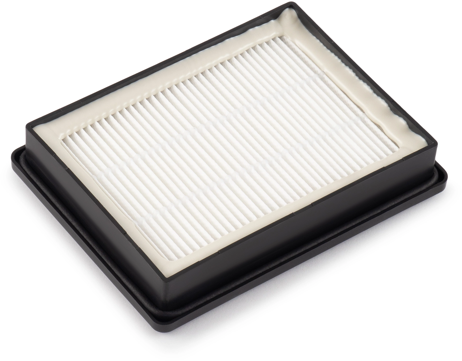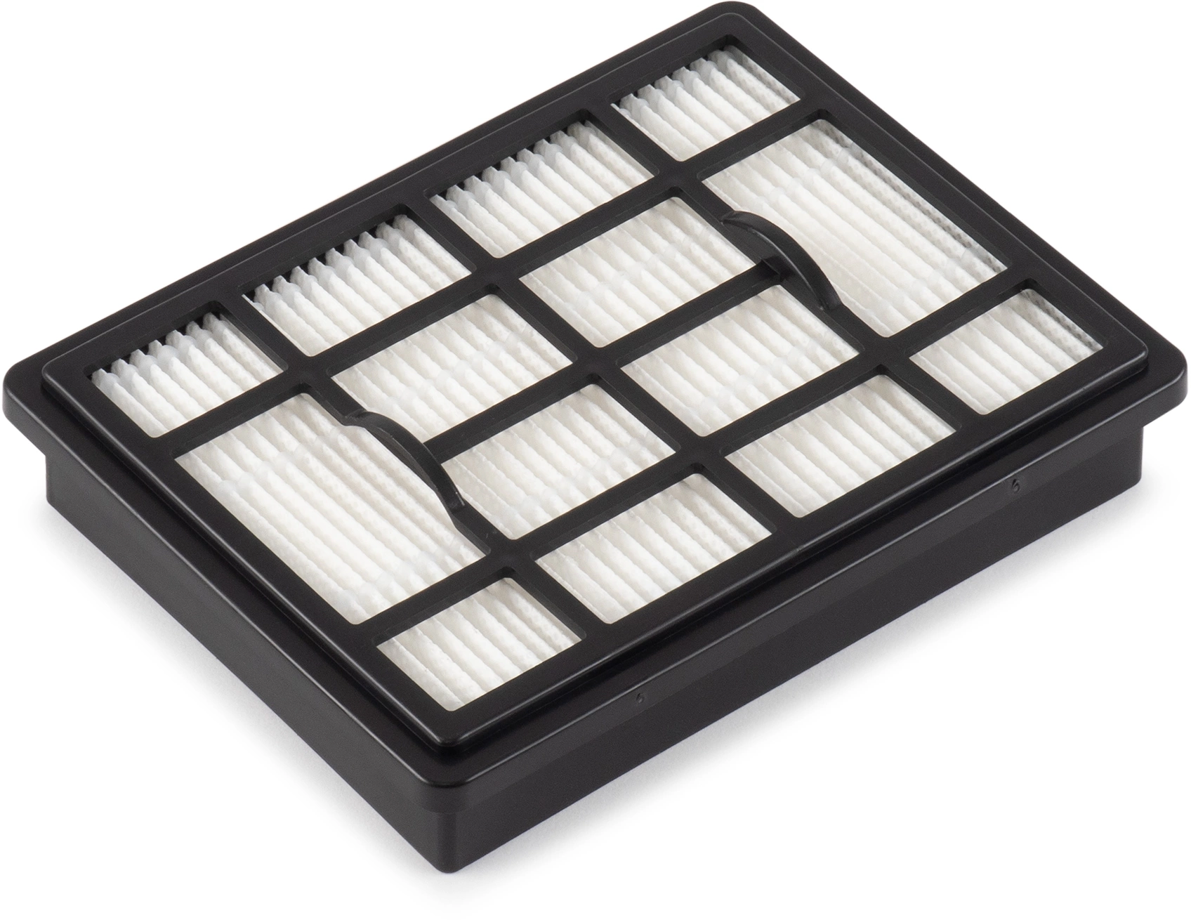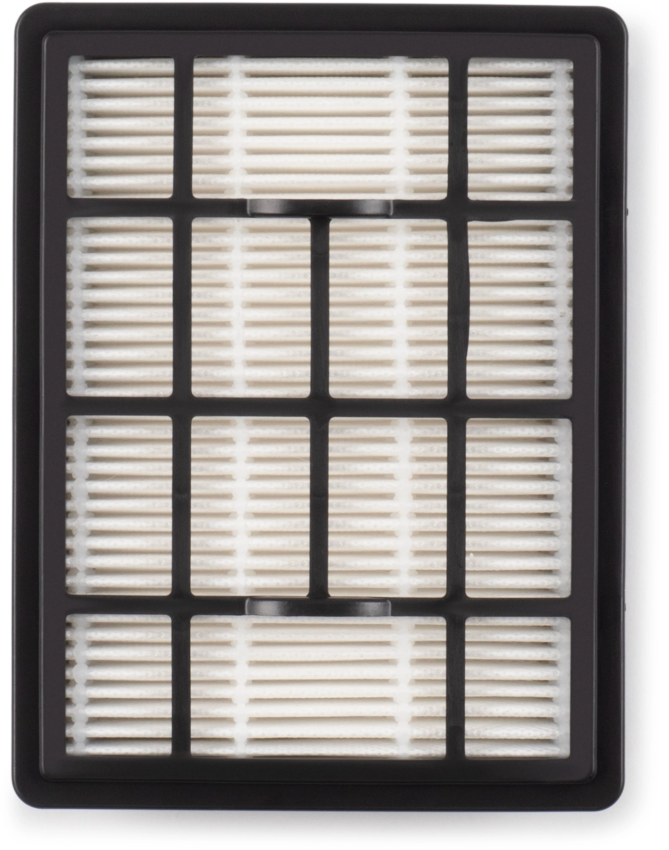 Внешний HEPA-фильтр изготовлен из тонких волокон, уложенных в несколько слоев в пластиковый корпус. Устанавливается в месте выхода воздуха наружу из пылесоса чтобы задерживать мелкие частицы пыли.