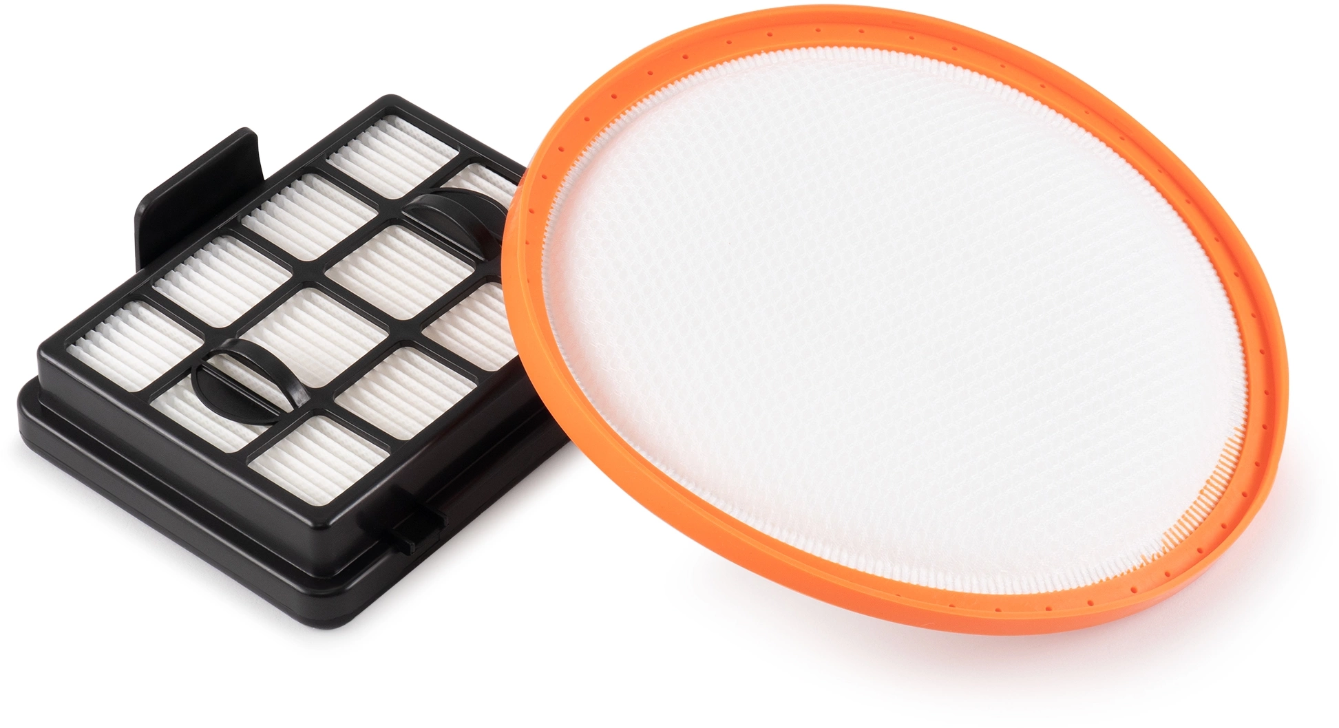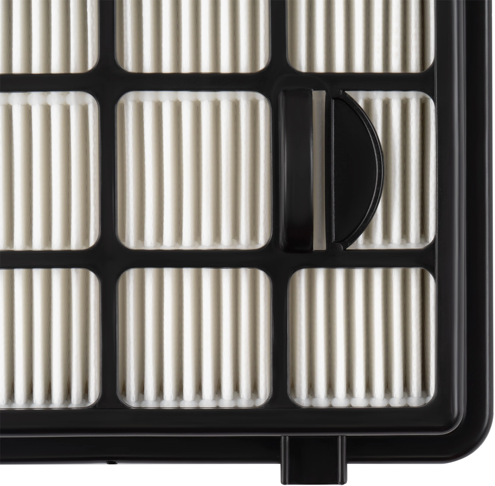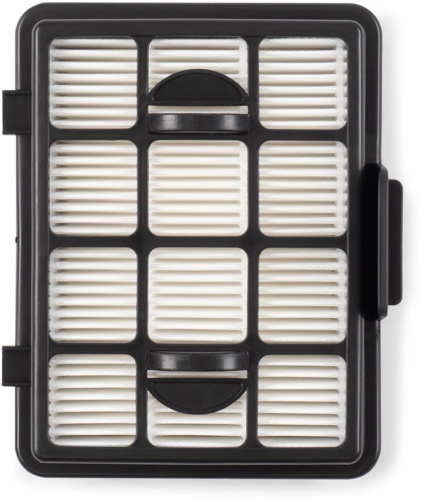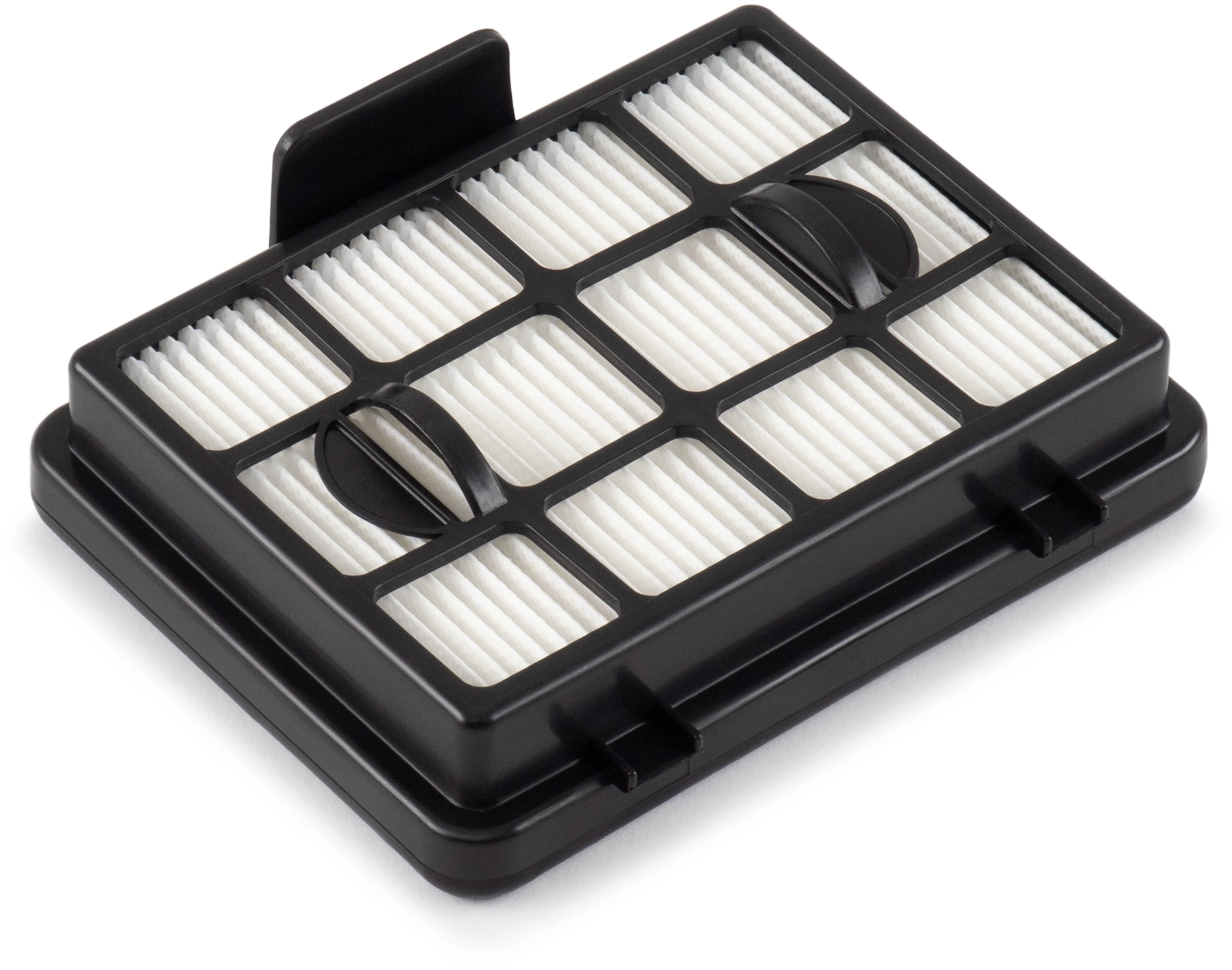 Внешний HEPA-фильтр, изготовленный из многослойного волокнистого материала, уложенного в прочный корпус, задерживает мельчайшие частицы пыли, снижая риск возникновения аллергических реакций. Внешний фильтр устанавливается на выходе воздуха из пылесоса. Фильтры обеспечивают эффективную уборку полов и ковров и одновременно улучшают качество воздуха в помещении.