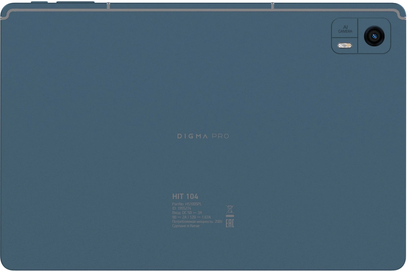 Digma Pro HIT 104 выполнен из металла в темно-синем цвете с очень лаконичным дизайном. Передняя панель почти вся занята 10-дюймовым дисплеем на стеклянной подложке с IPS-матрицей разрешением 1920?1200 точек. По бокам находятся небольшие рамки примерно с палец толщиной, чтобы было удобно держать планшет. В верхнюю рамку интегрирована 5-Мп фронтальная камера для селфи и видеозвонков.