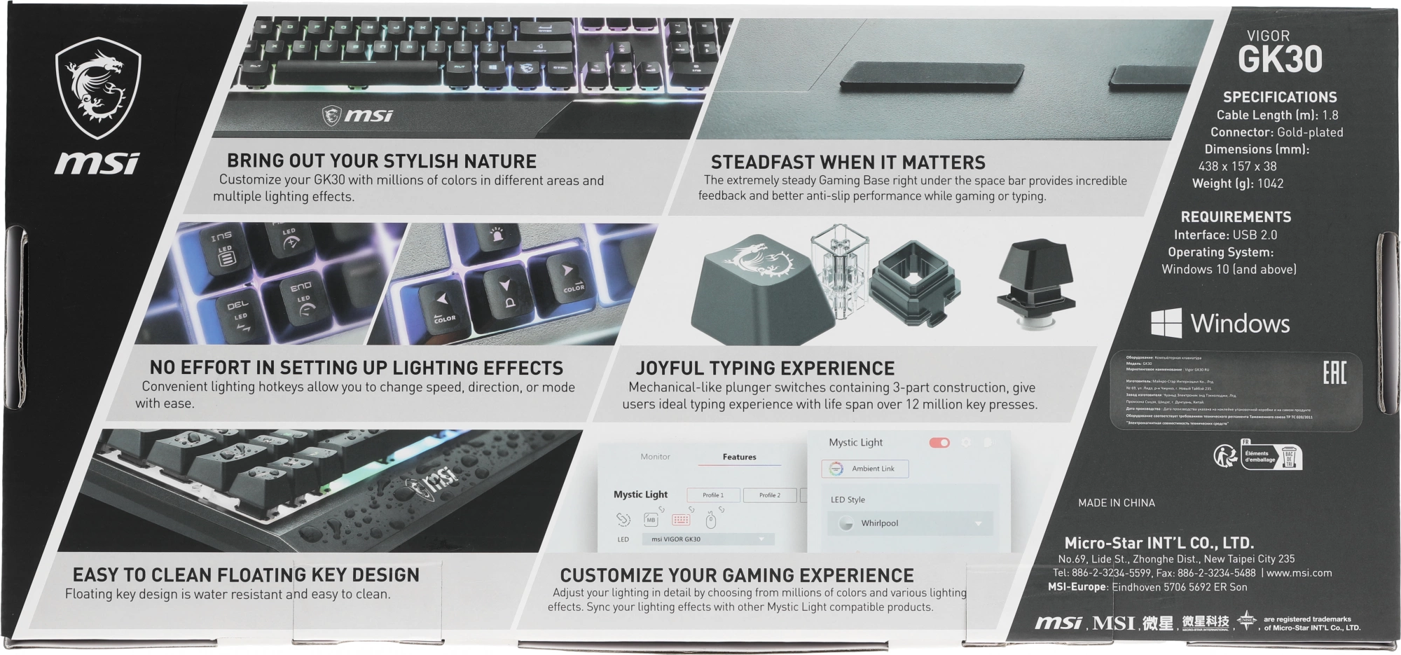 Плунжерные переключатели обеспечивают четкий процесс печатания. Точная детальная настройка с помощью ПО Dragon Center. 6-зонная полноцветная подсветка.