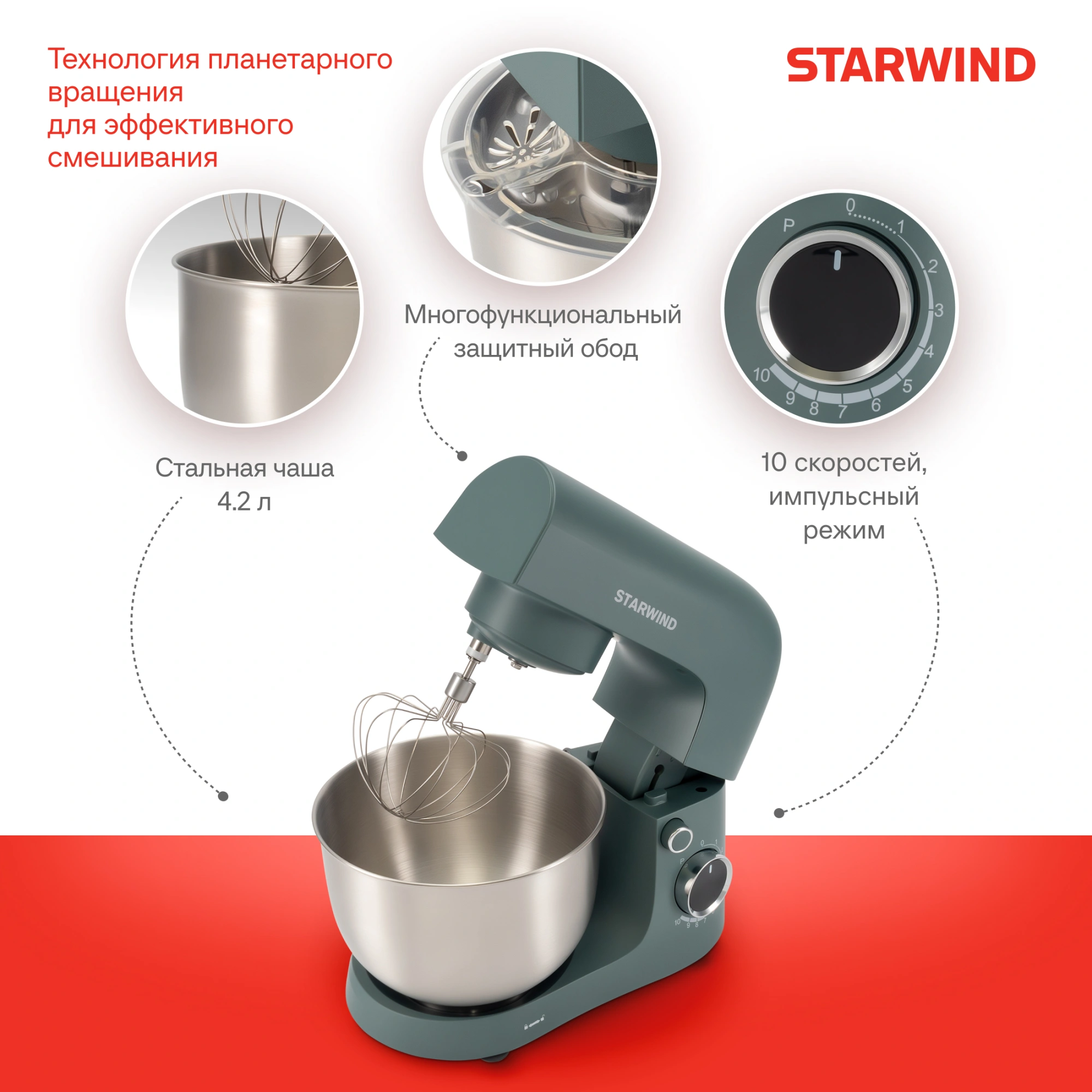 Планетарный миксер Starwind SPM2151 — это многофункциональное устройство, которое станет незаменимым помощником на вашей кухне. Благодаря мощному двигателю и различным насадкам, он эффективно справляется с различными задачами: от взбивания белков до замешивания теста.