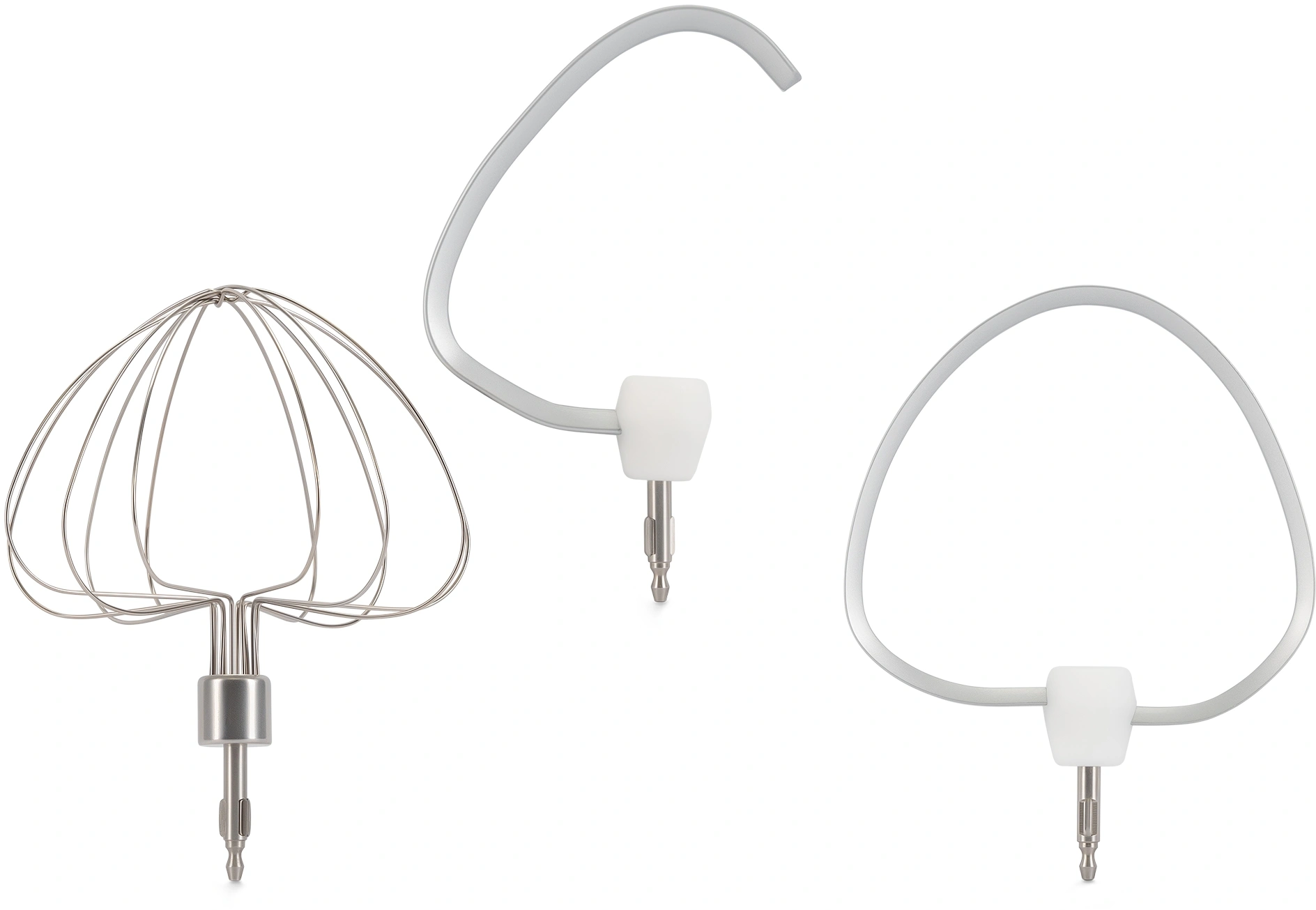 В комплекте с миксером идут три насадки: венчик для взбивания, крюк для замешивания теста и лопатка для перемешивания. Они изготовлены из прочного металла, который не подвержен коррозии. 10 скоростей вращения позволяют выбрать идеальные настройки для смешивания продуктов.