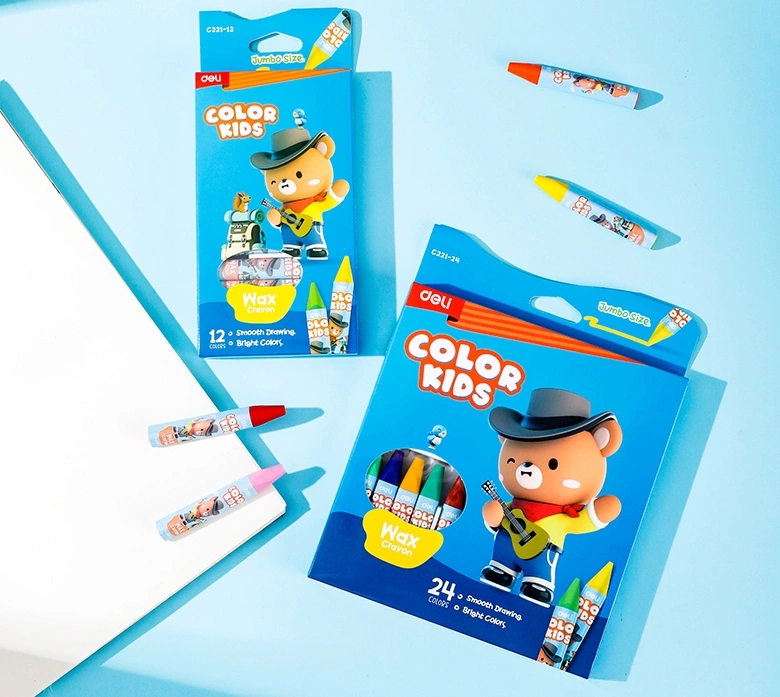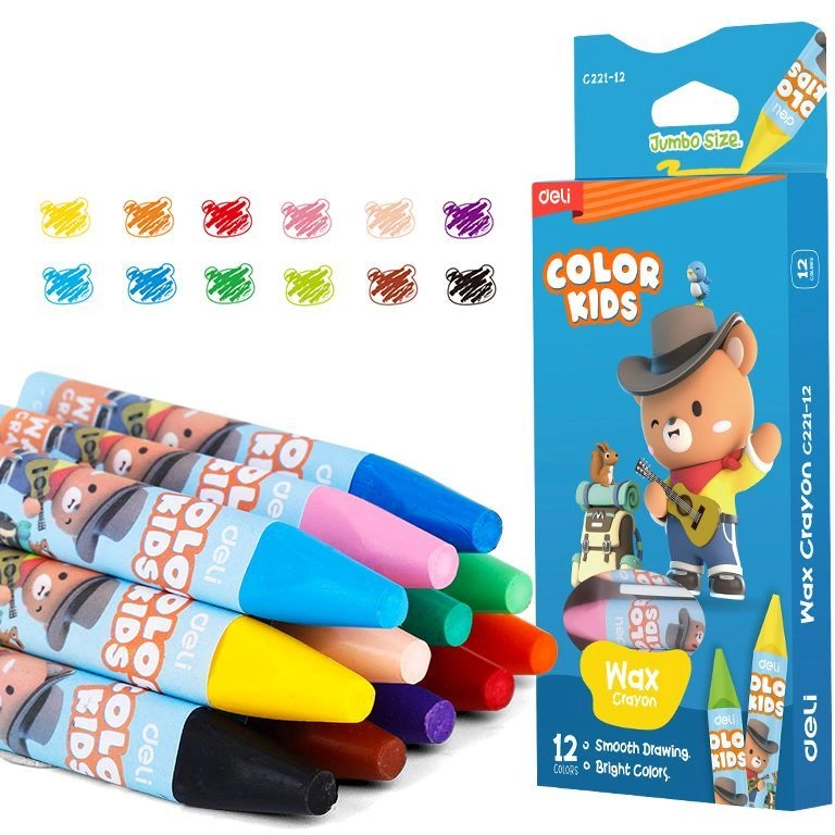 Восковые мелки Deli EC221-12 трехгр. 12цв. (12шт) дл.75мм д.11мм картон.кор./европод.