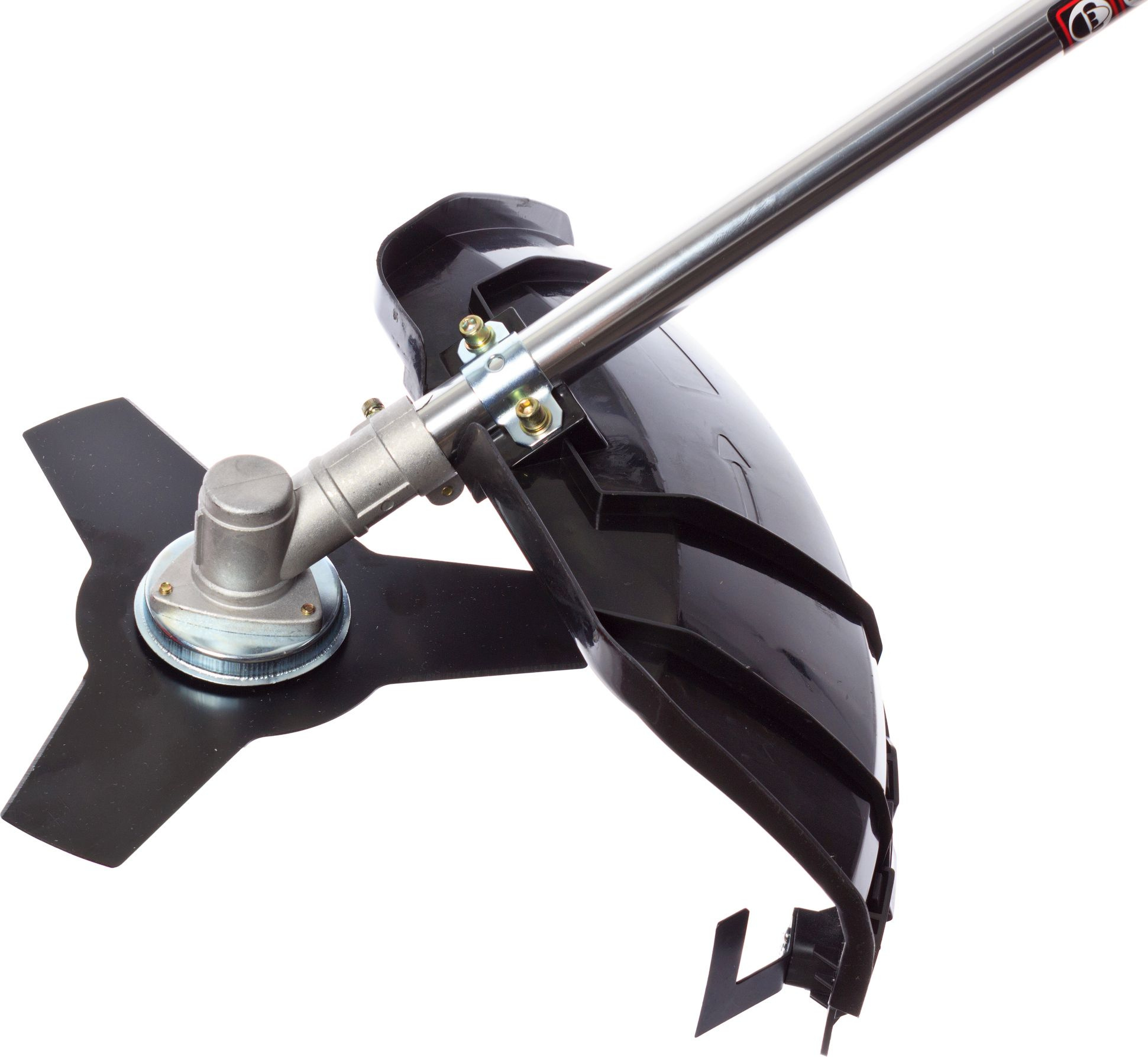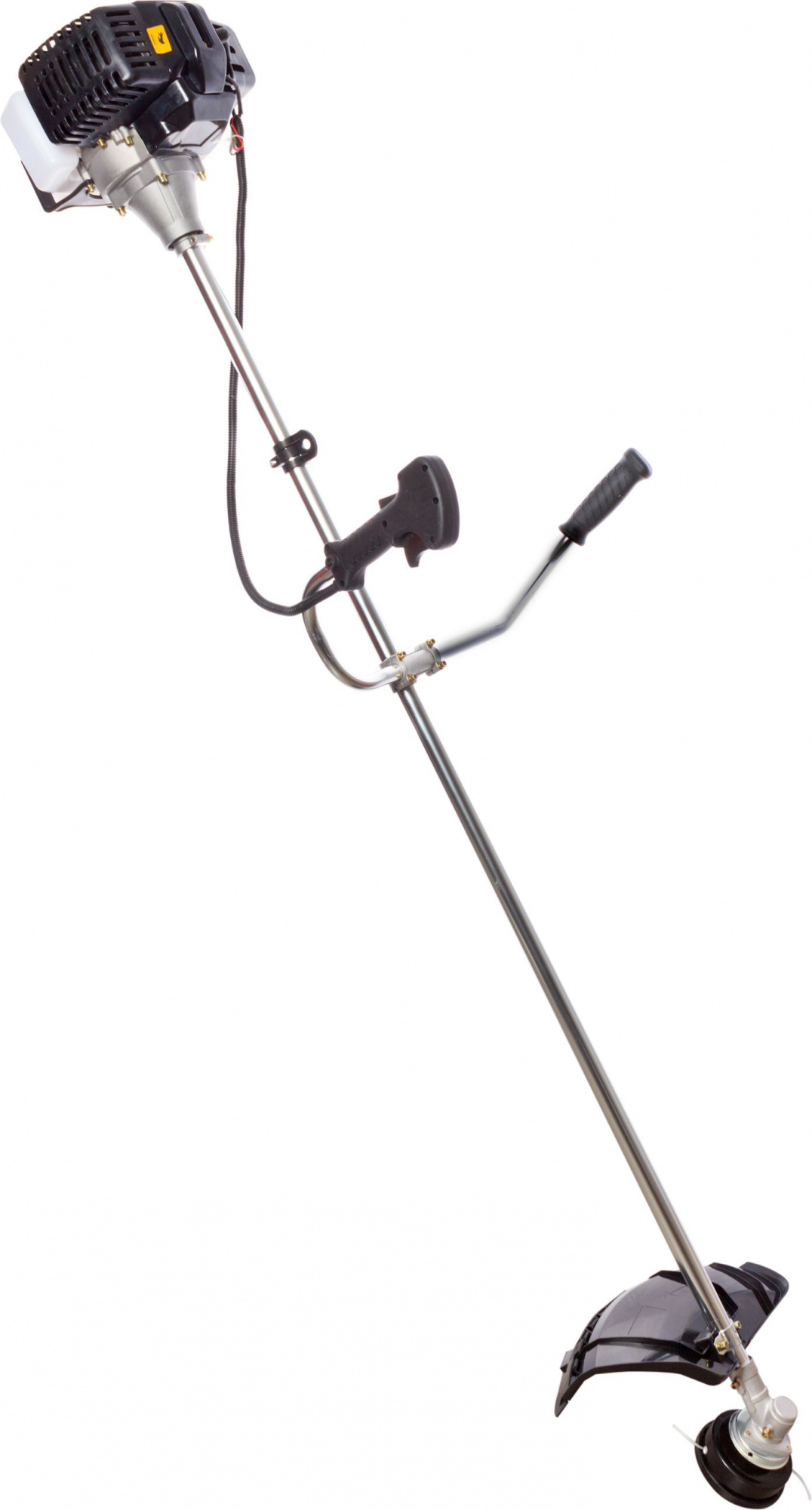 Защитный кожух; Наплечный ремень; Шпулька с леской; 3х лопастной диск; Ёмкость для приготовления топливной смеси; Крепёж; Нож к защитному щитку; Шестигранный ключ 2шт; Гаечный ключ; Свечной ключ; Отвёртка; Инструкция по эксплуатации