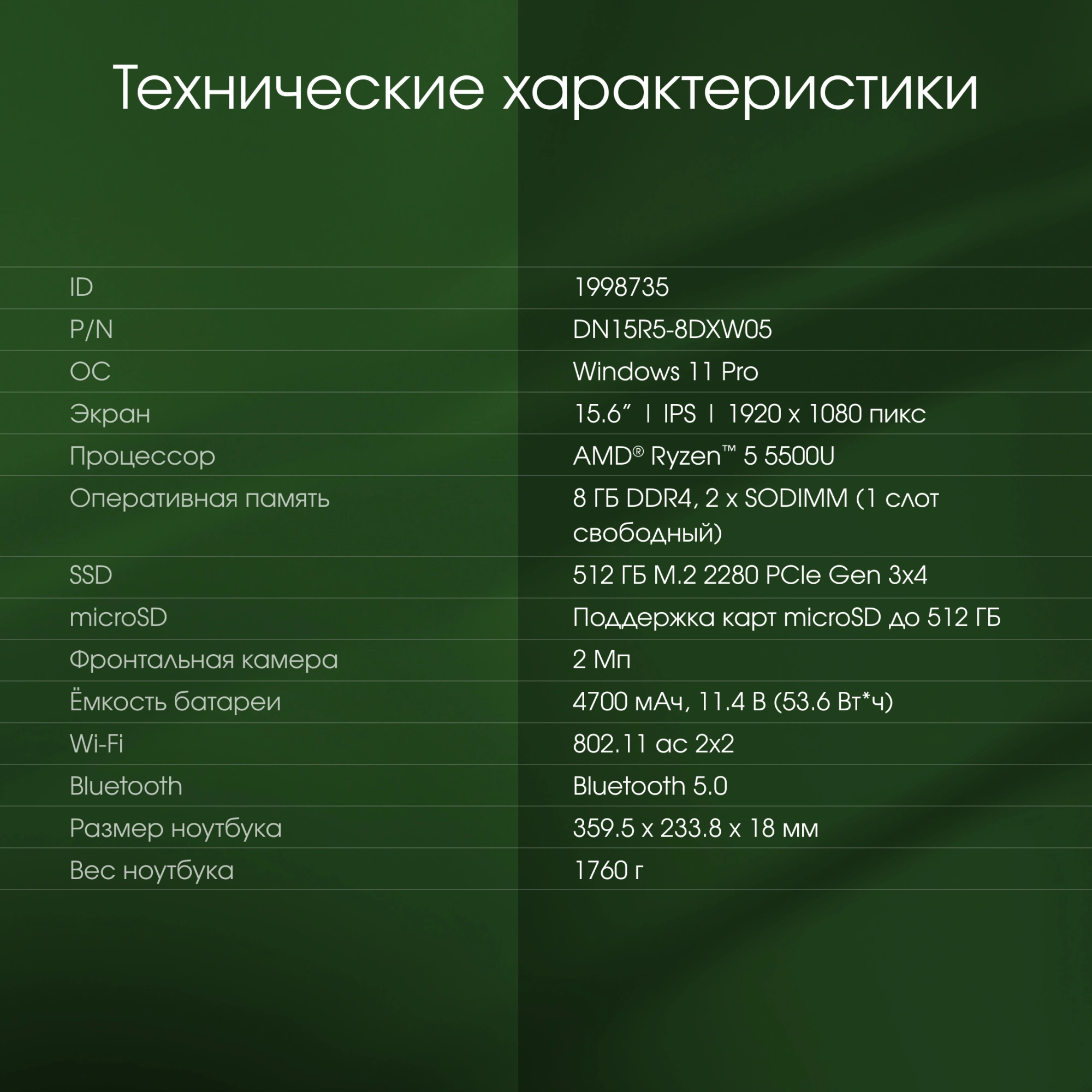 Ryzen 5 5500U 8Gb SSD512Gb AMD Radeon Graphics 15...
