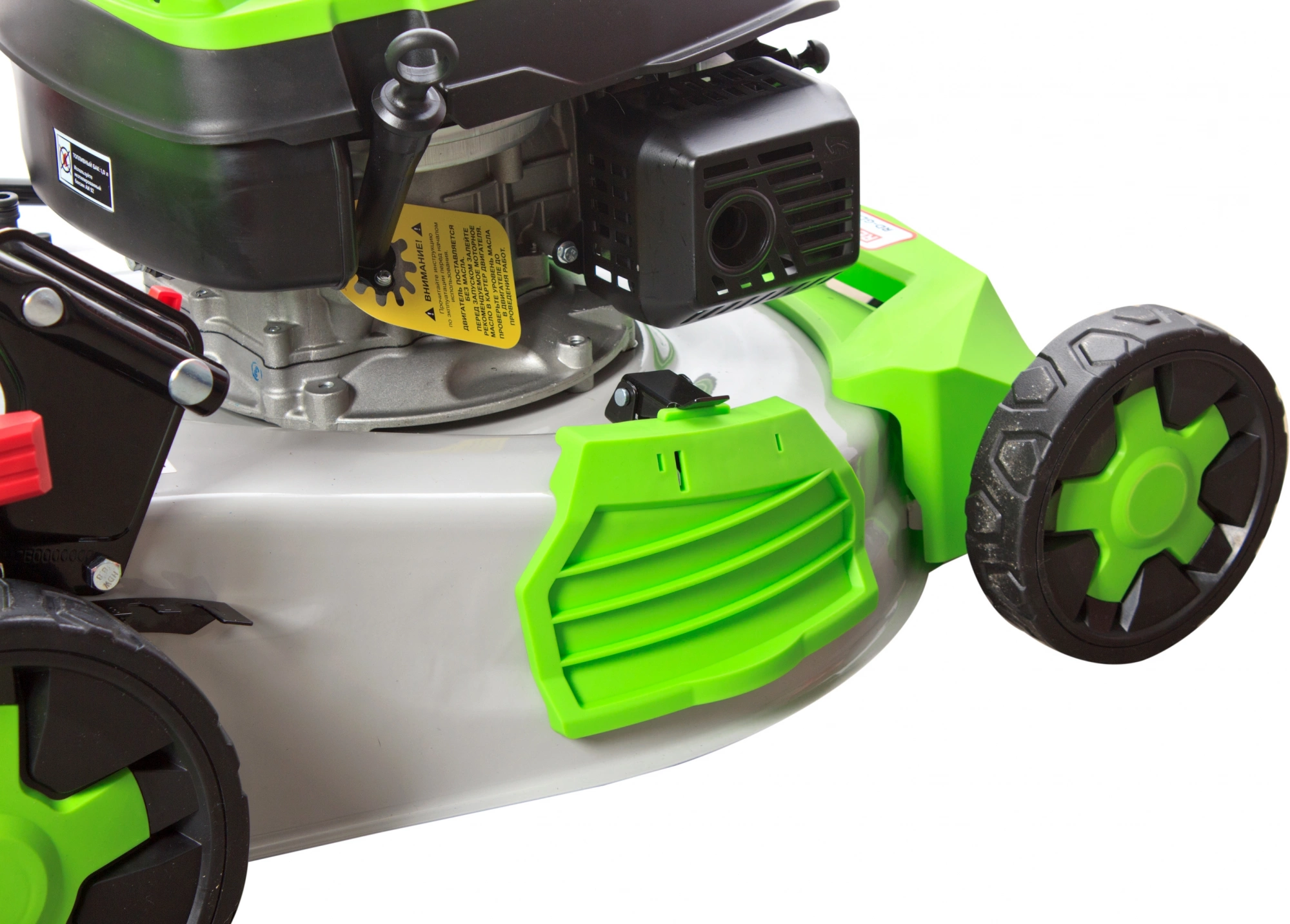 Бензиновая газонокосилка, Травосборник, Винт с барашковой гайкой - 2шт, Шуруп - 2шт, Патрубок бокового выброса, Инструкция по эксплуатации, Инструкция на двигатель