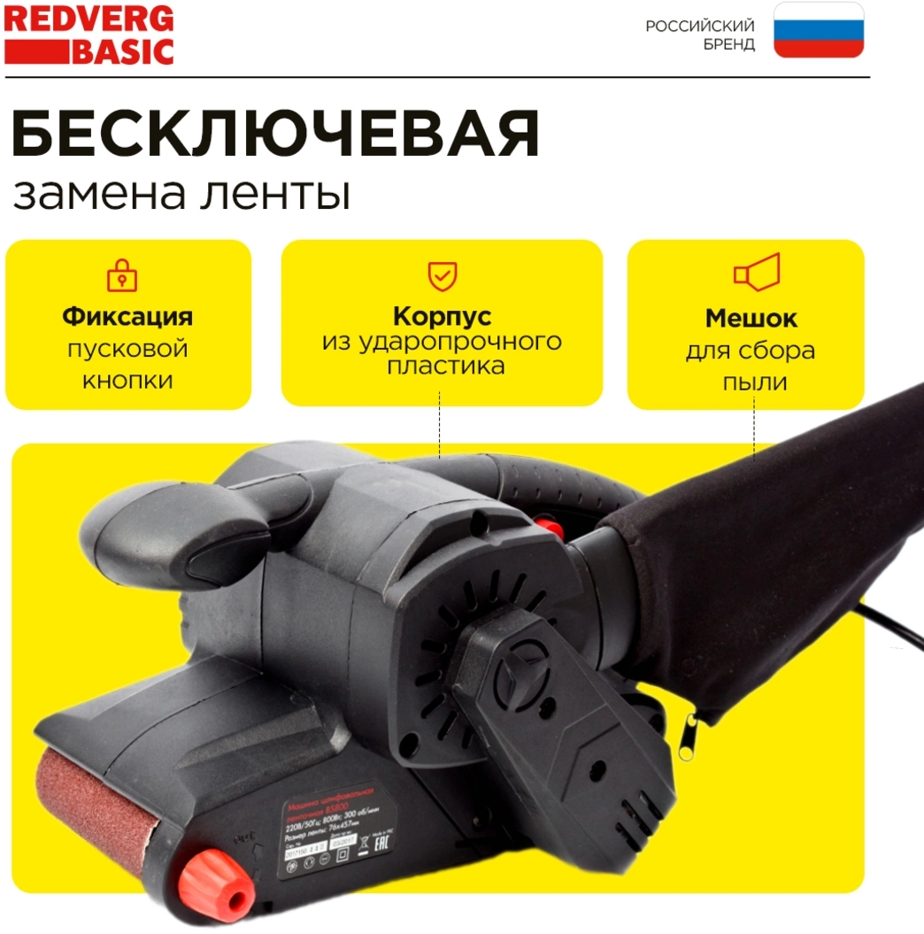 Бесключевая замена ленты - шлифовальная лента меняется удобно и быстро, без использования дополнительных инструментов.