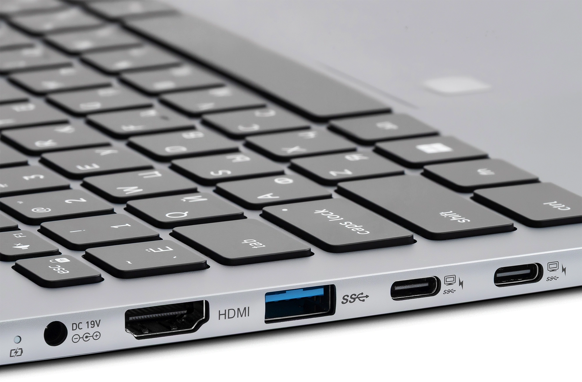 Удобство подключения: Ноутбуки Pactos оборудованы необходимым набором портов — от USB 3.0 Type-C/Type-A до разъема HDMI. Кроме того, они также оснащены разъемом для наушников и слотом для карт памяти microSD.