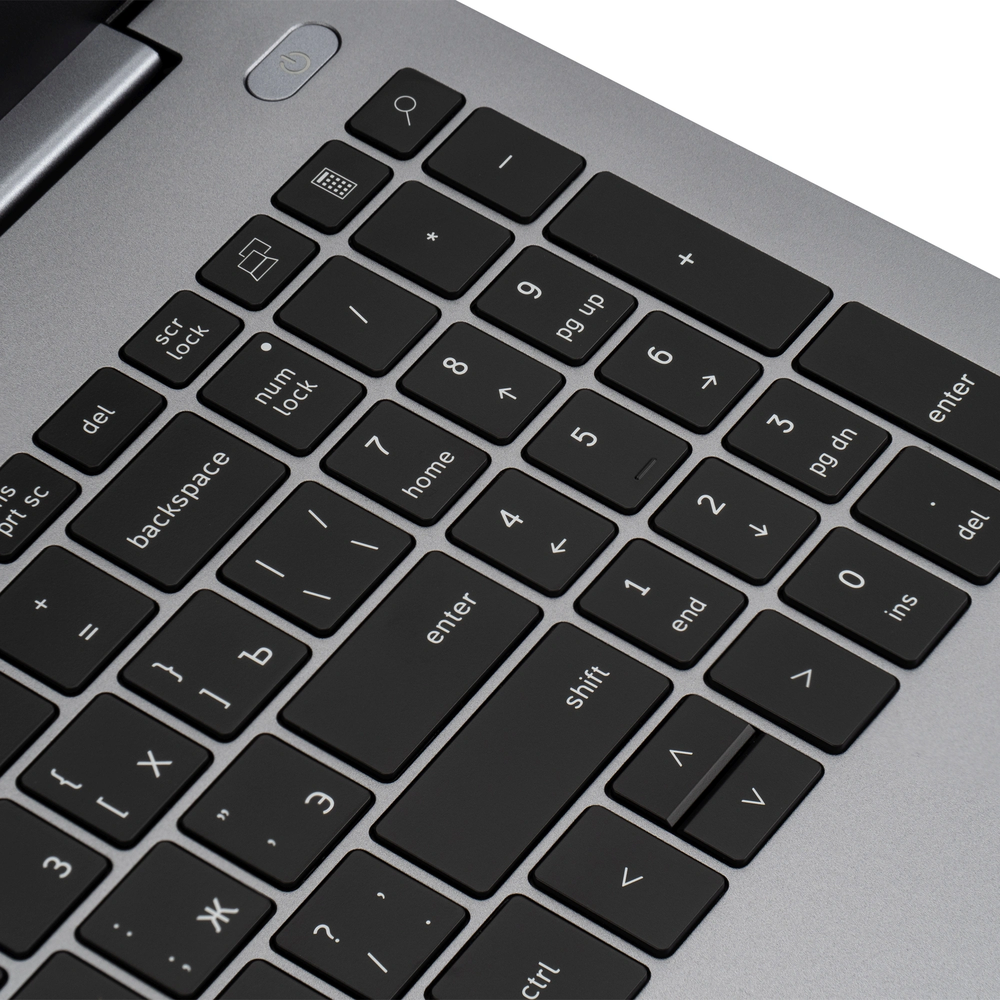 Продуманный дизайн и надежность: Прочный металлический корпус темно-серого цвета с белой подсветкой клавиатуры выглядит стильно и современно. Тачпад с встроенным сканером отпечатков пальцев и возможность открытия на 180 градусов обеспечивают дополнительное удобство.