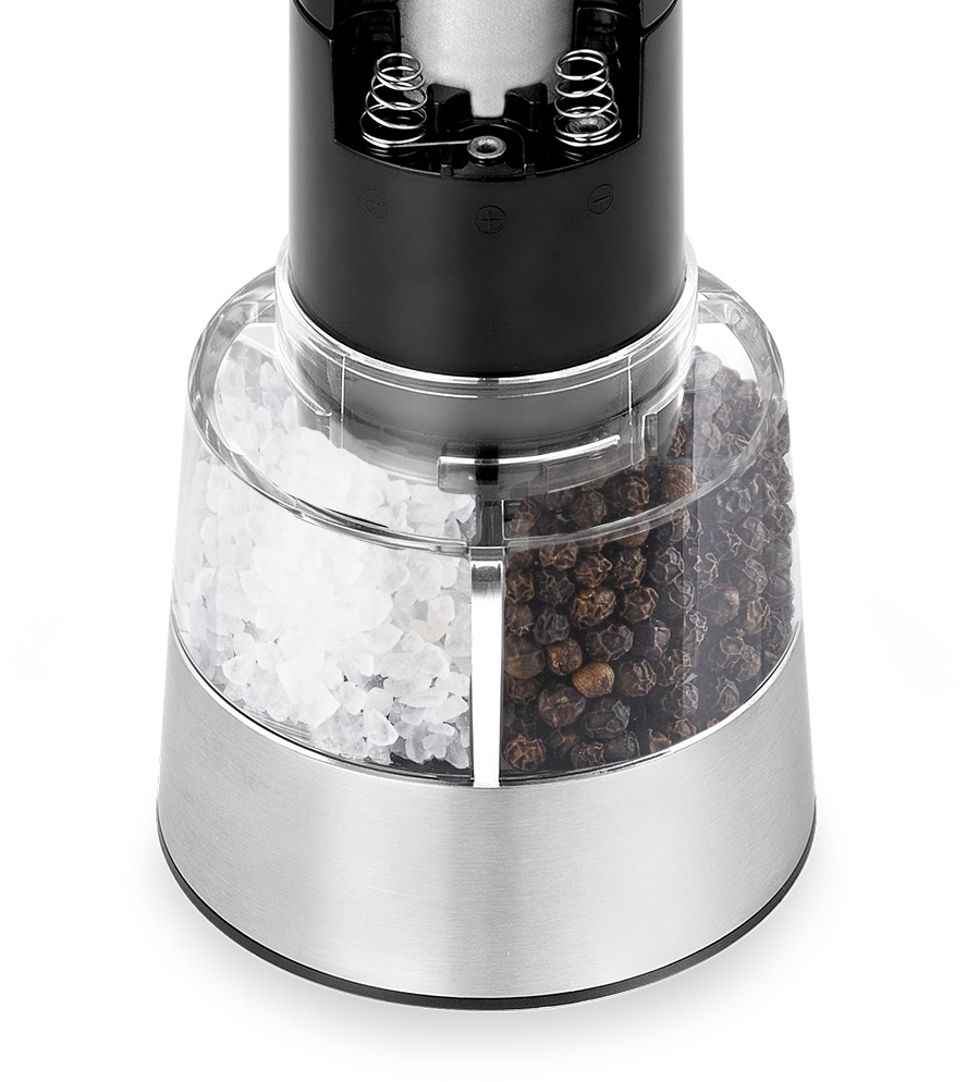 Устройство имеет специальную конструкцию «2 в 1»: ёмкость для специй разделена на две части для измельчения двух видов специй.