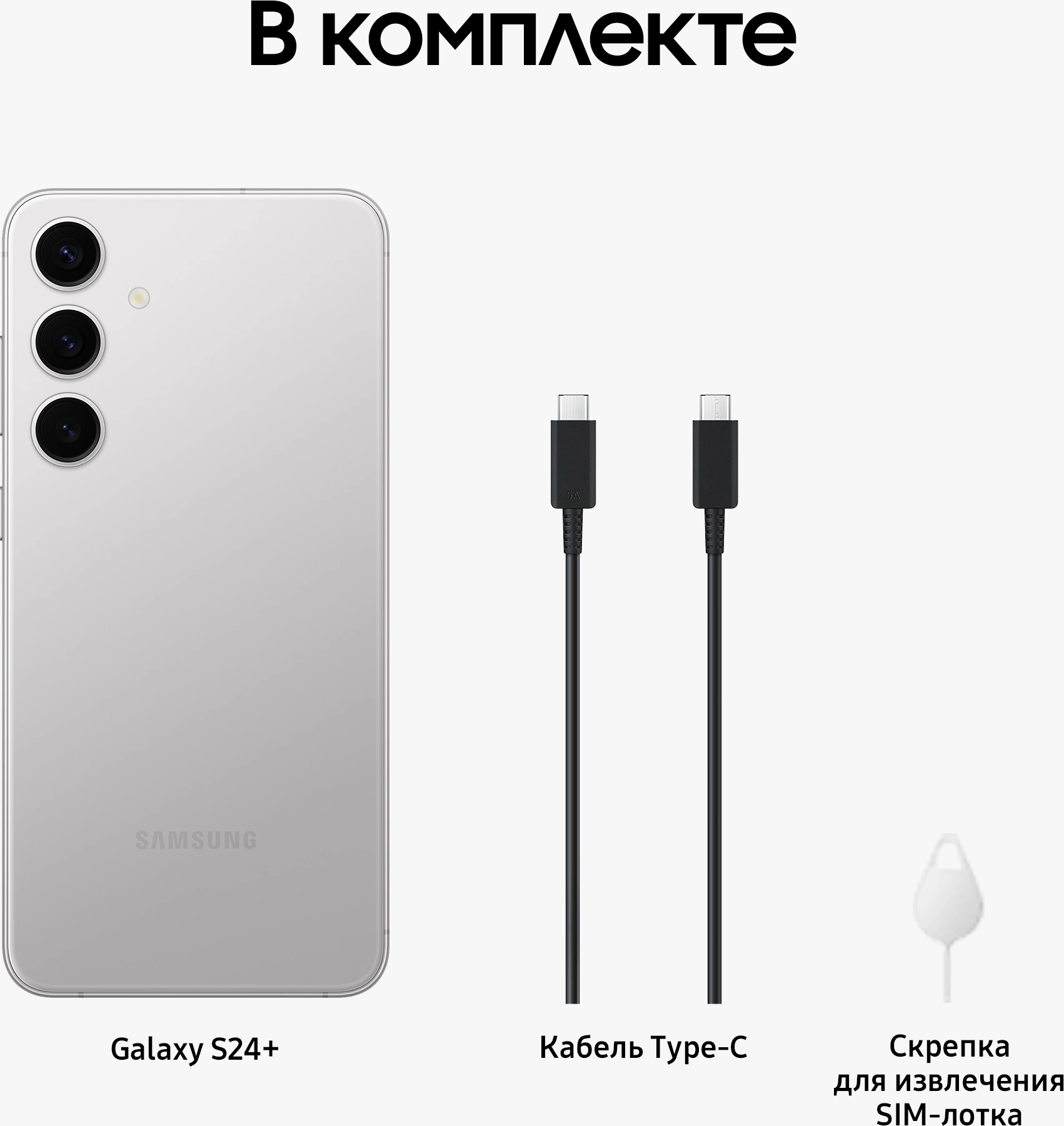 Смартфон, кабель Type-C/Type-C, скрепка для извлечения SIM-карт