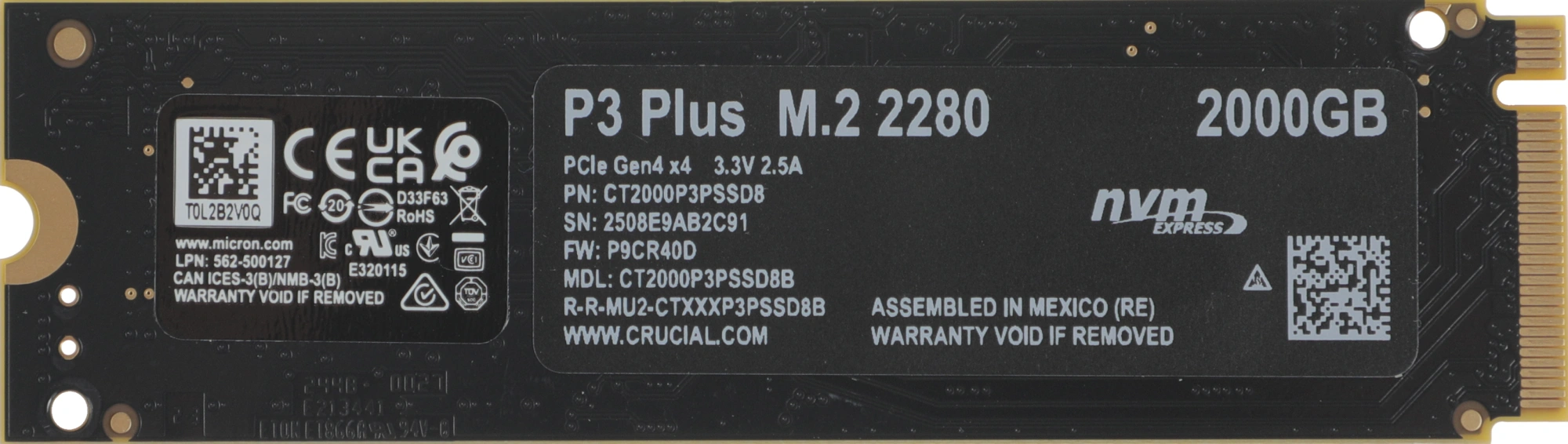 Накопитель SSD Crucial PCIe 4.0 x4 2TB CT2000P3PSSD8
