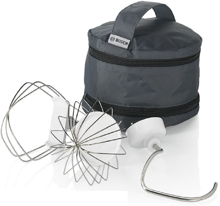 Крюк для теста, венчик для жидкого теста, венчик для взбивания. Универсальная резка с 3 режущими дисками (двусторонняя терка, двусторонняя шинковка, терка для сыра/ шоколада/ орехов). Блендер пластиковый 1,25л. Мясорубка. Измельчитель. Пластиковая чаша, 3,9л. Сумка. Крышка с загрузочным отверстием.