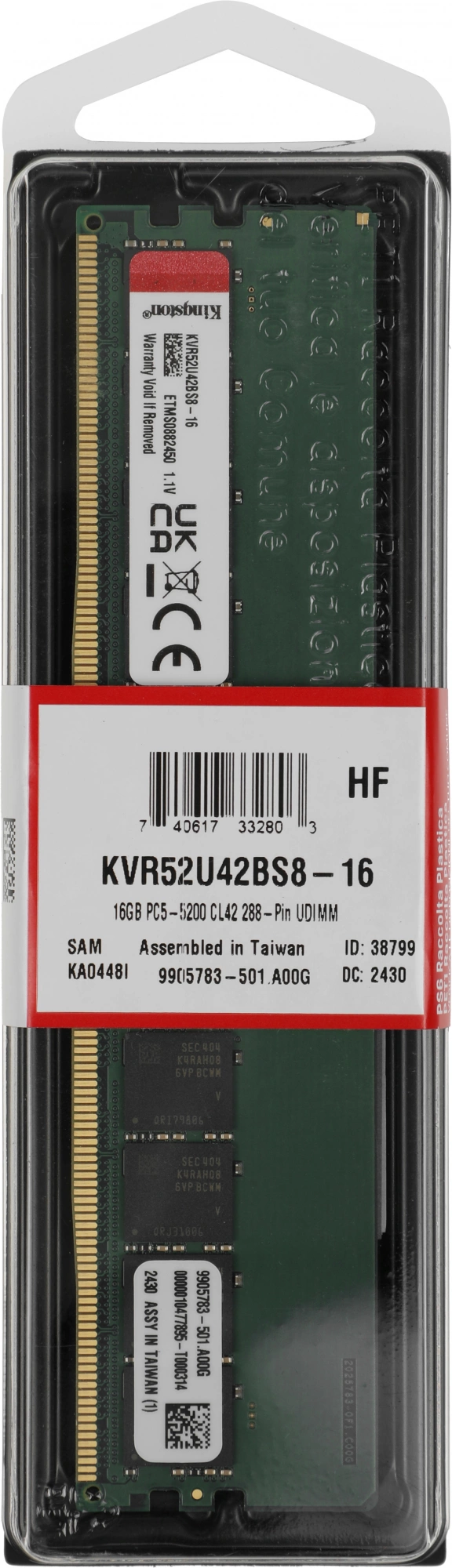 Память DDR5 16GB 5200MHz Kingston KVR52U42BS8-16