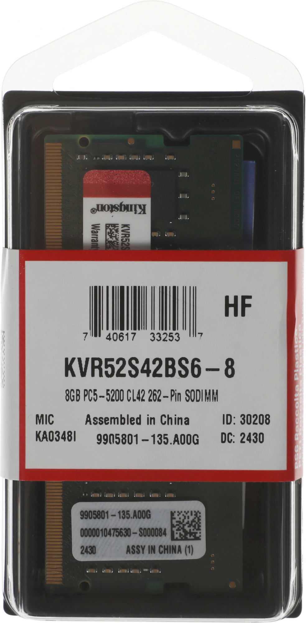 Память DDR5 8GB 5200MHz Kingston KVR52S42BS6-8