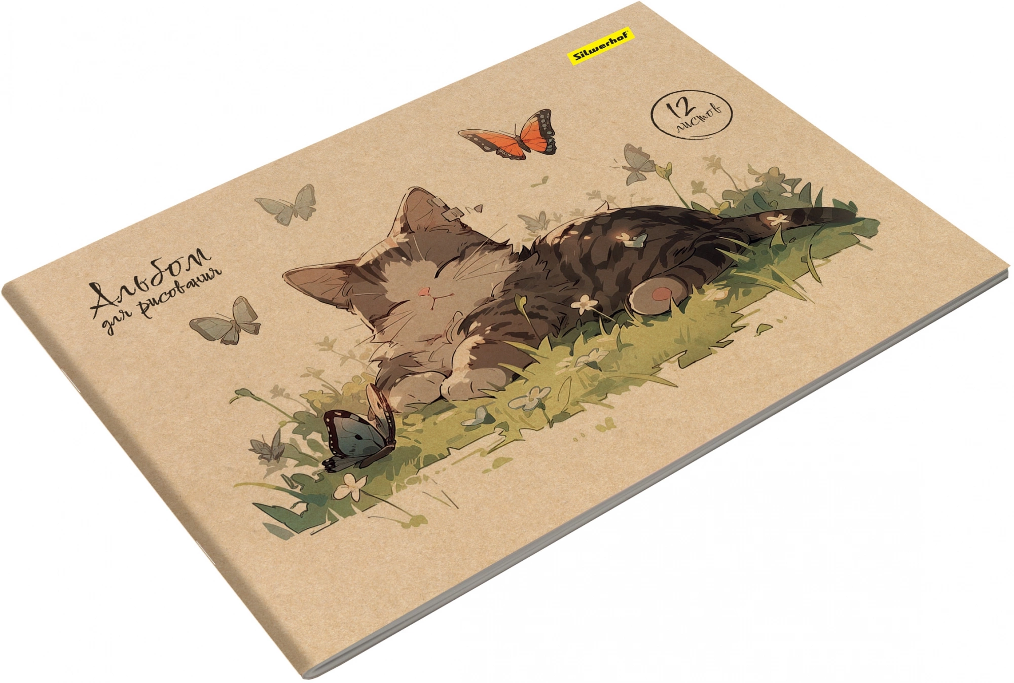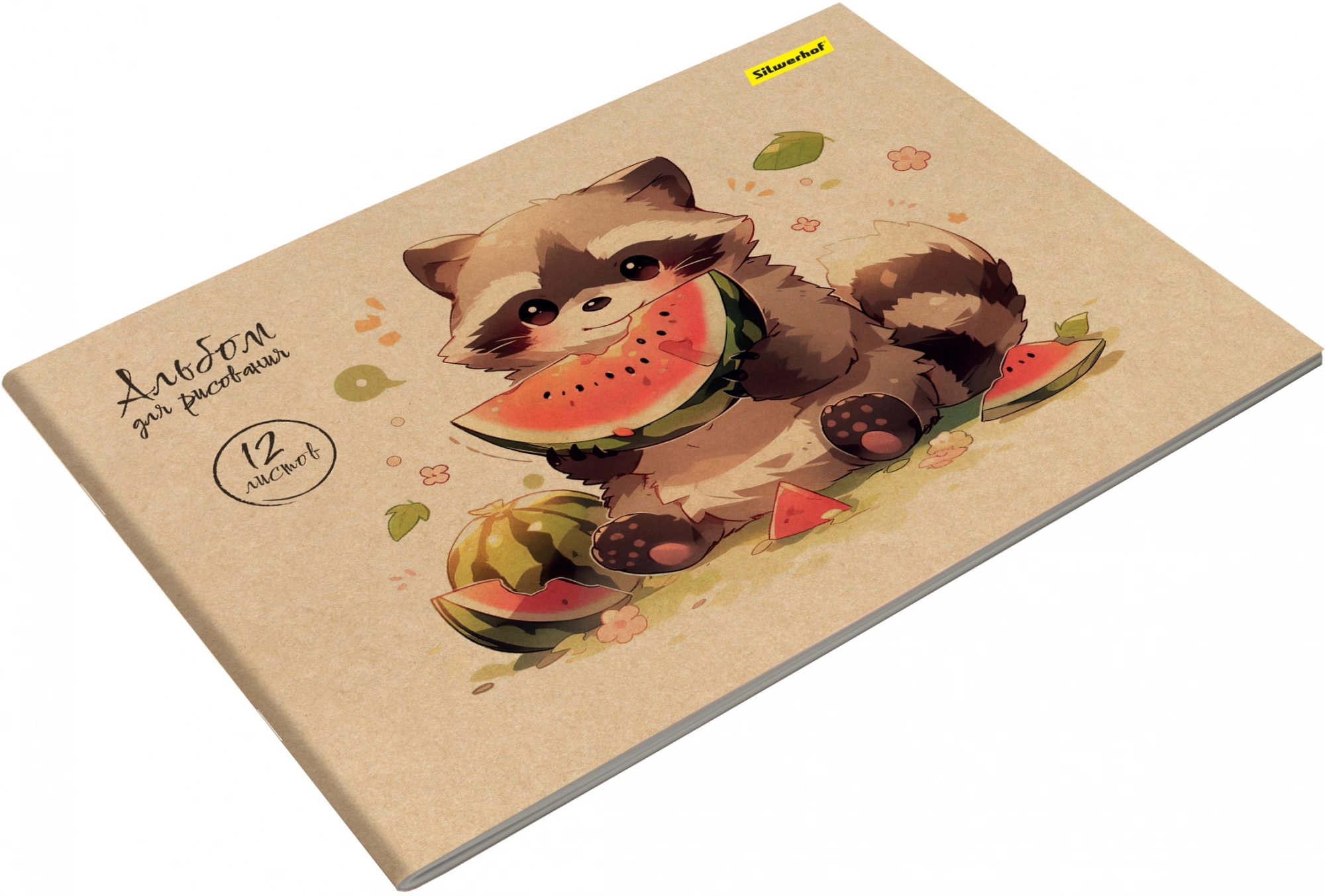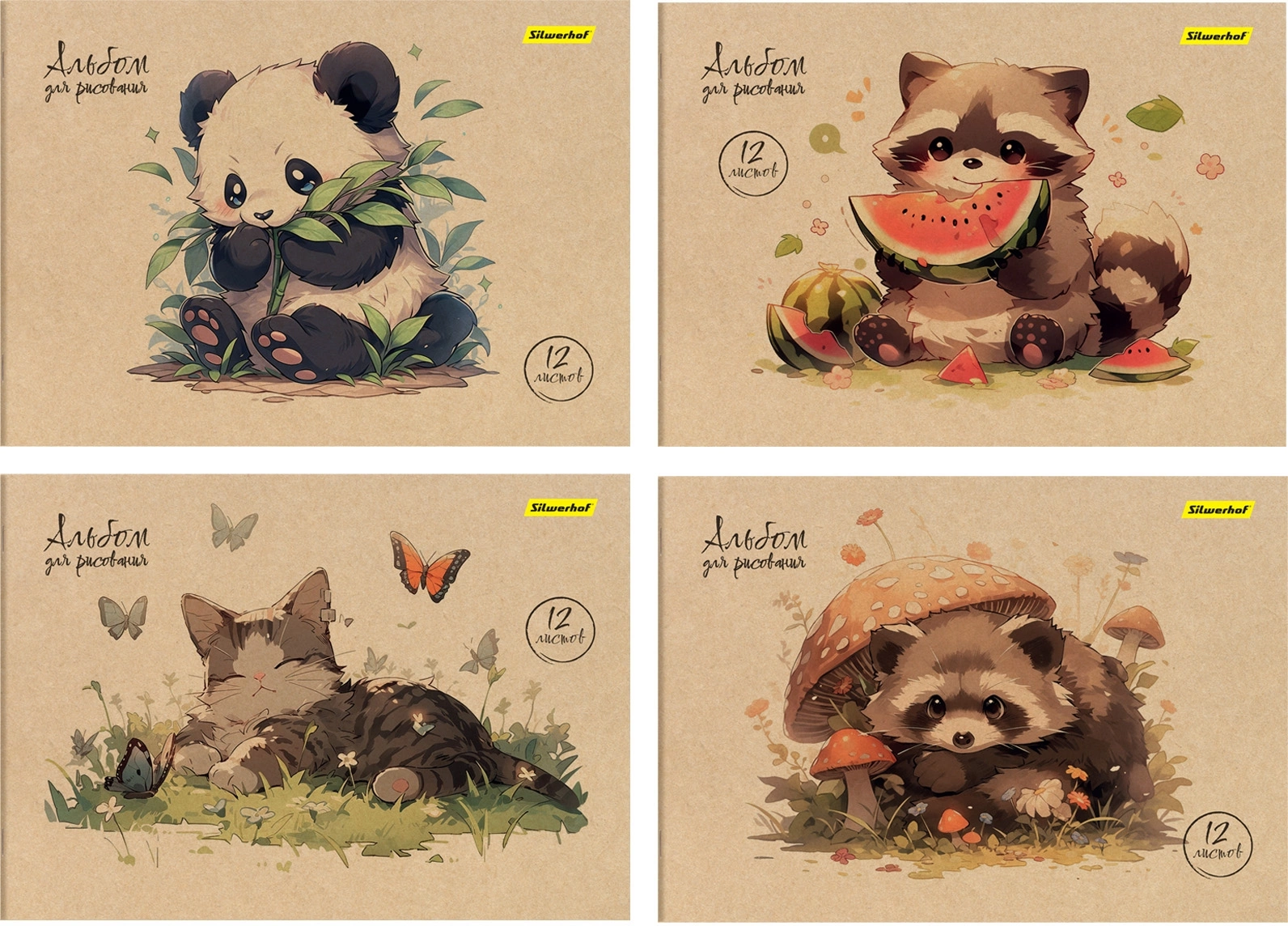 Альбом для рисования Silwerhof 12л. A4 Акварель на крафте 4диз. мел.картон скрепка (упак.:4шт)