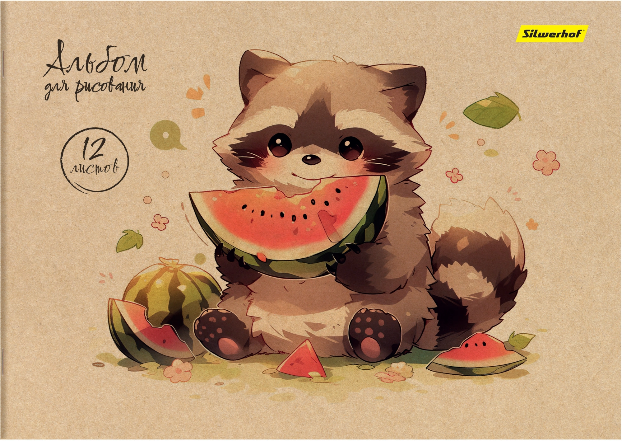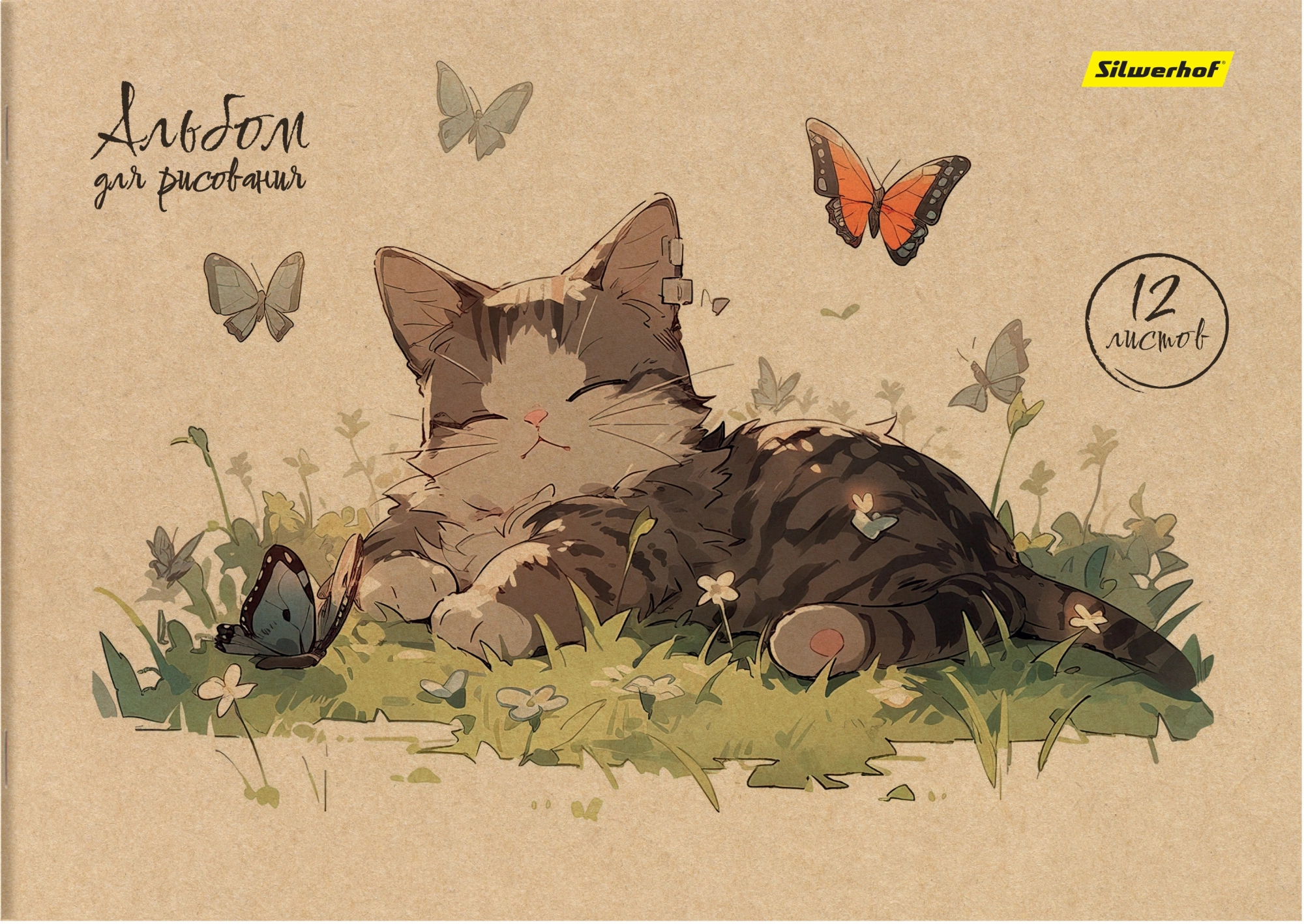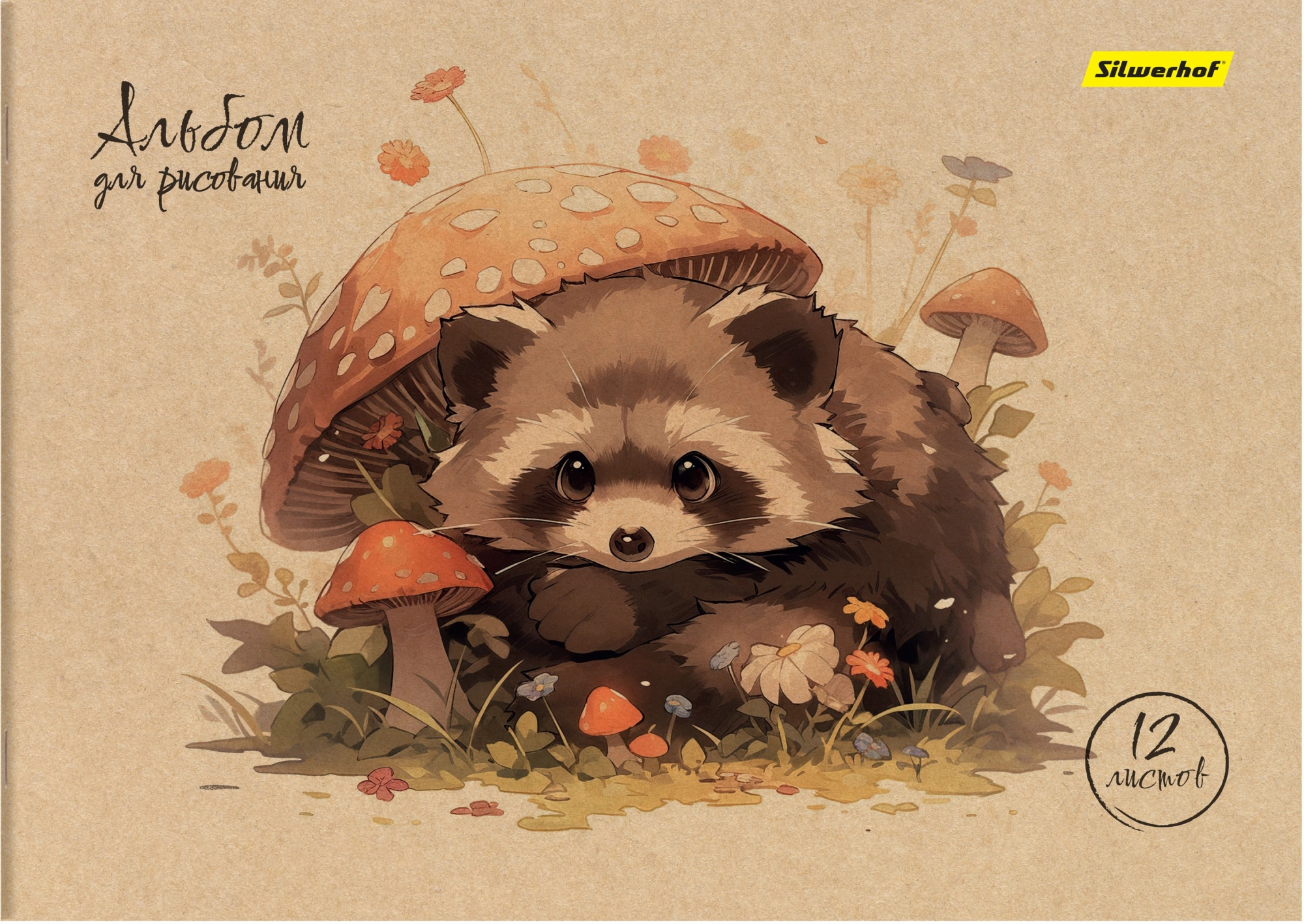 Альбом для рисования Silwerhof 12л. A4 Акварель на крафте 4диз. мел.картон скрепка (упак.:4шт)