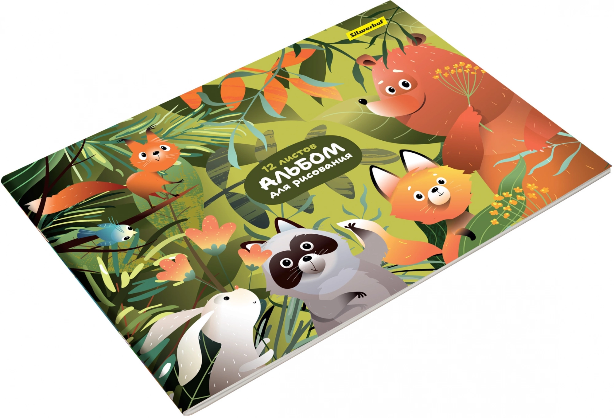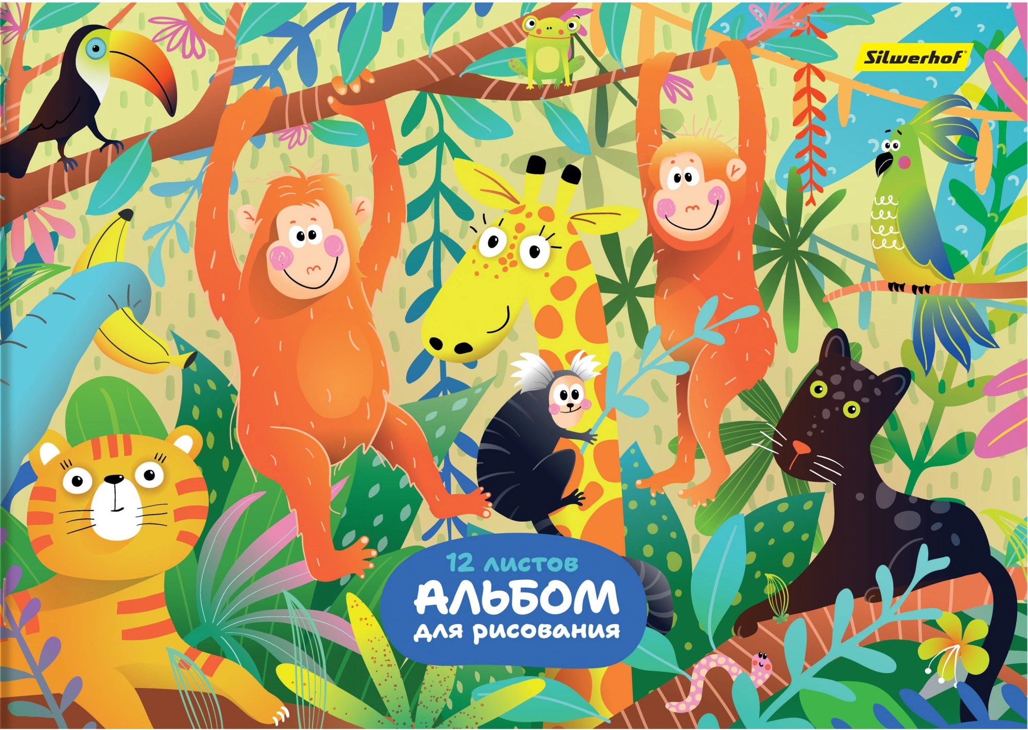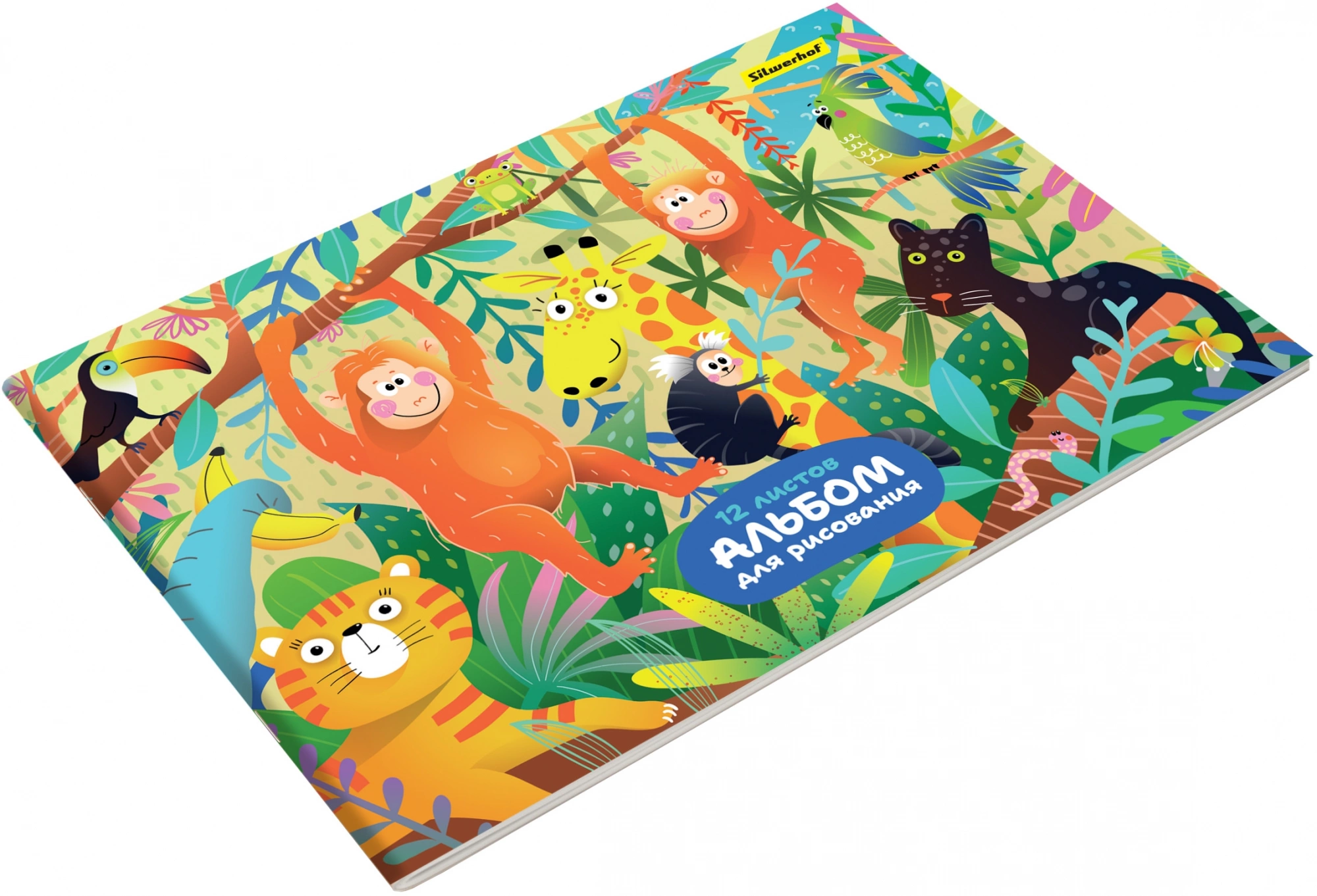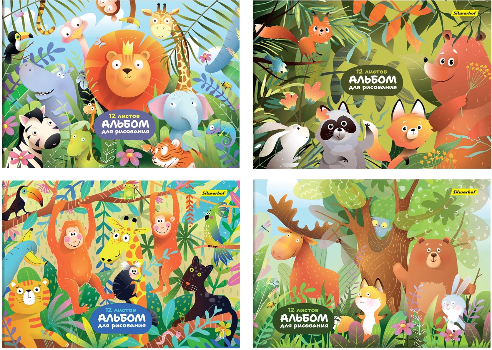 Альбом для рисования Silwerhof 12л. A4 Джунгли 4диз. мел.картон скрепка (упак.:4шт)