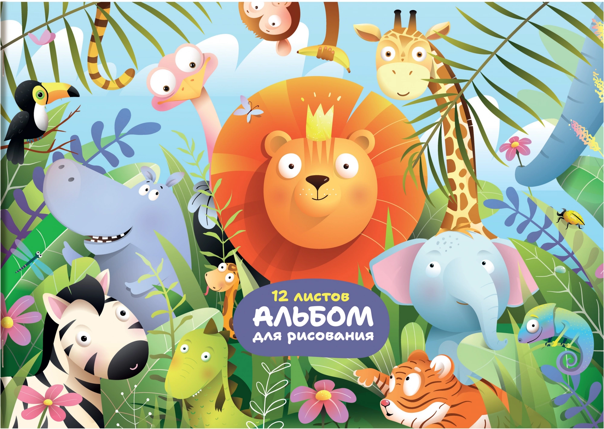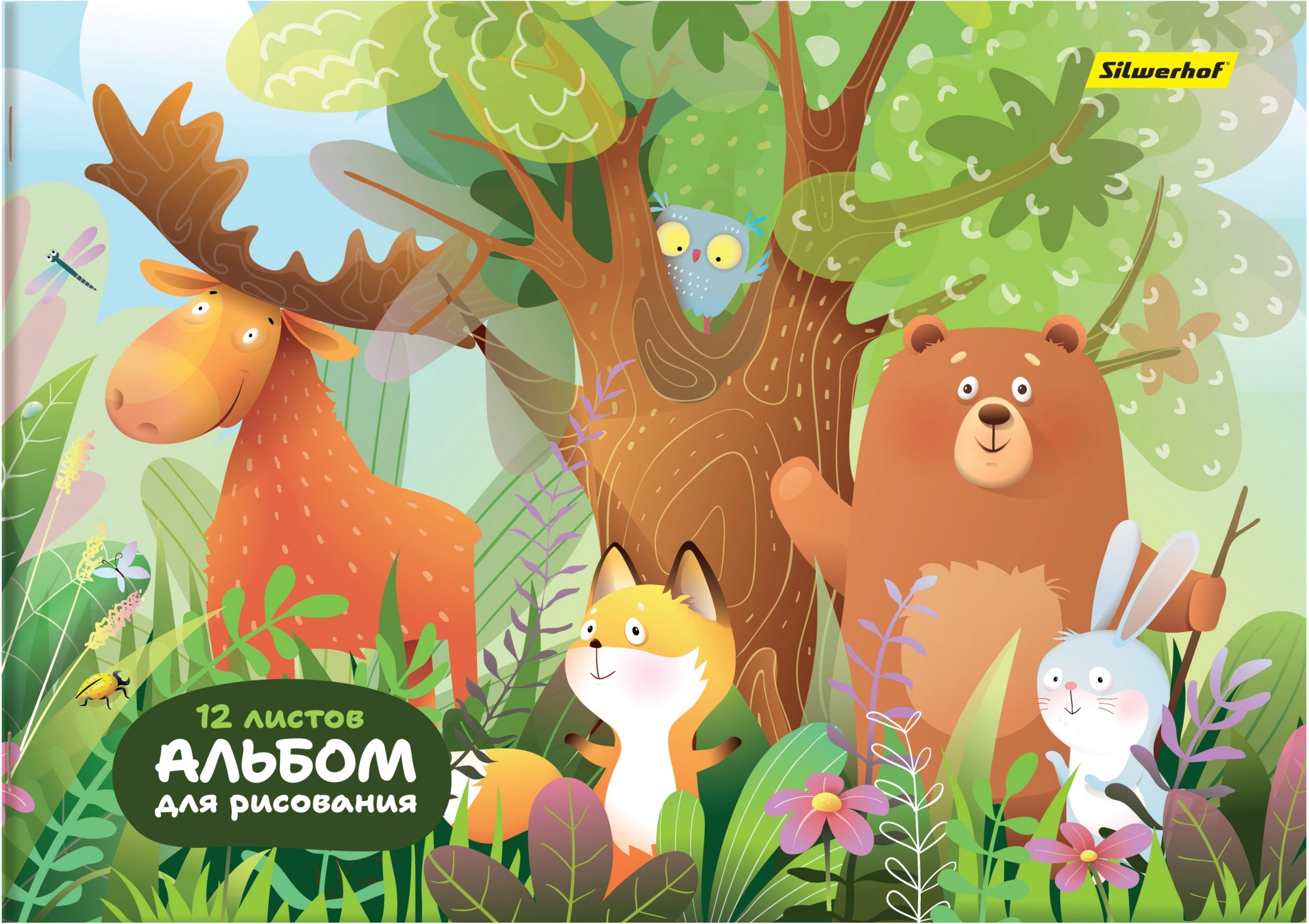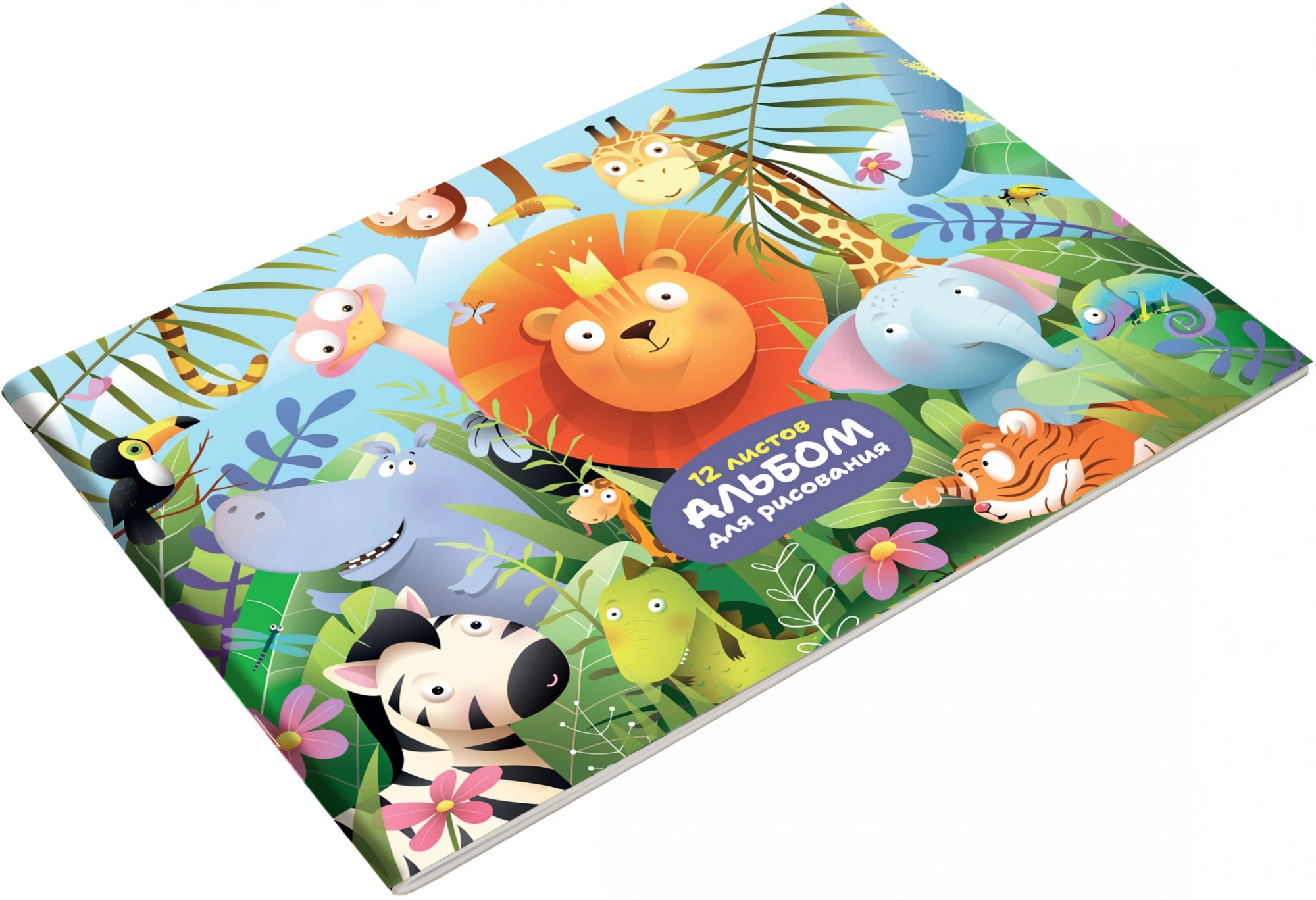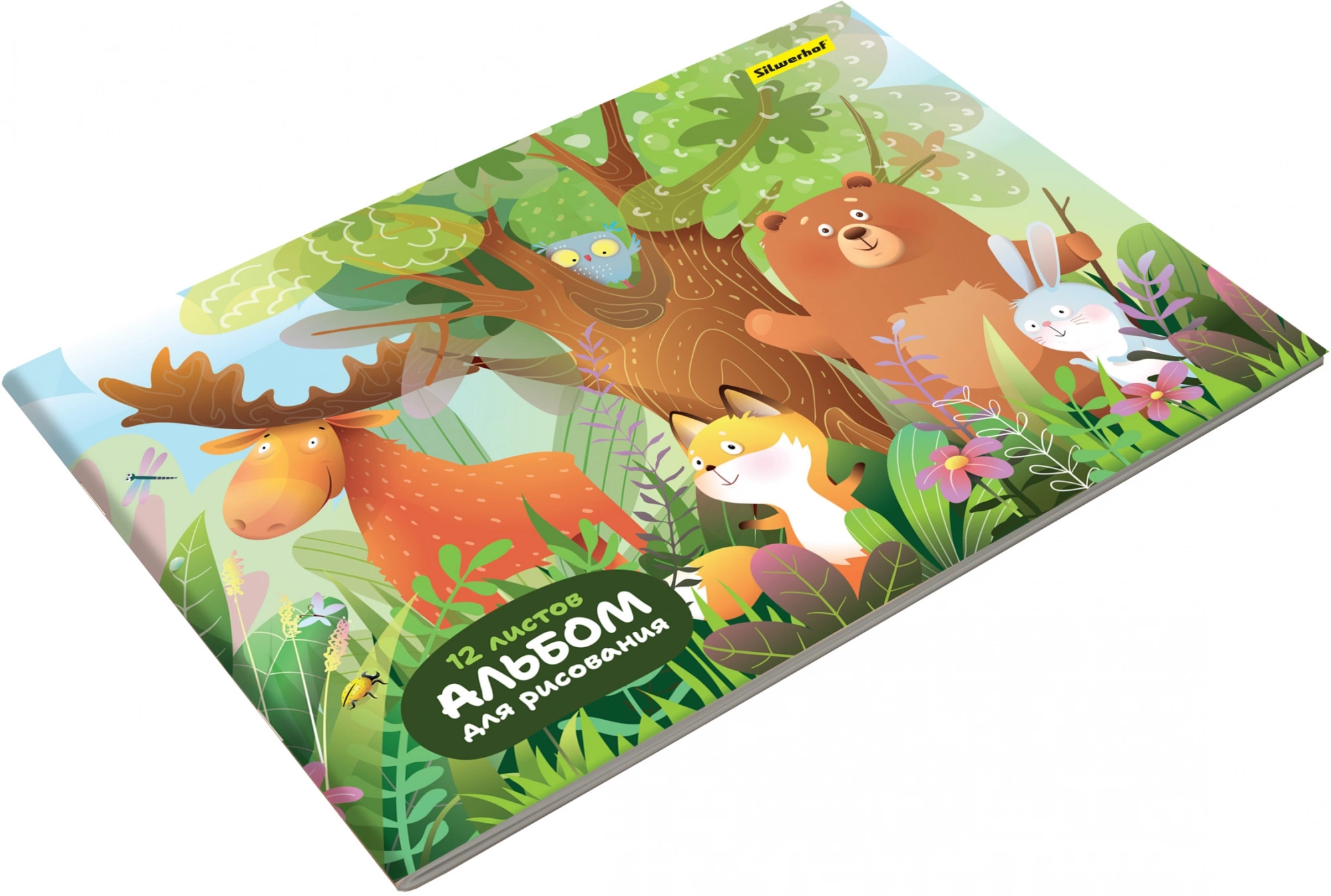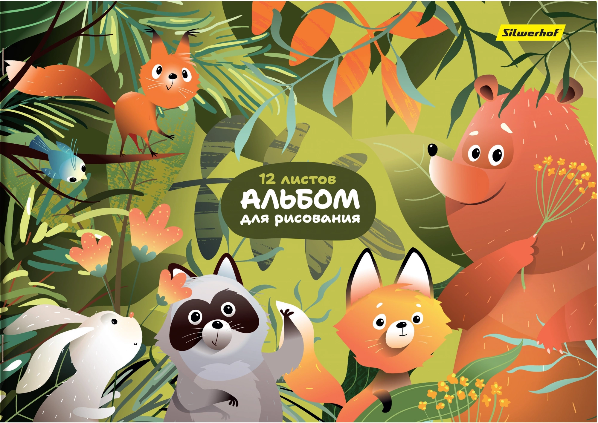 Альбом для рисования Silwerhof 12л. A4 Джунгли 4диз. мел.картон скрепка (упак.:4шт)
