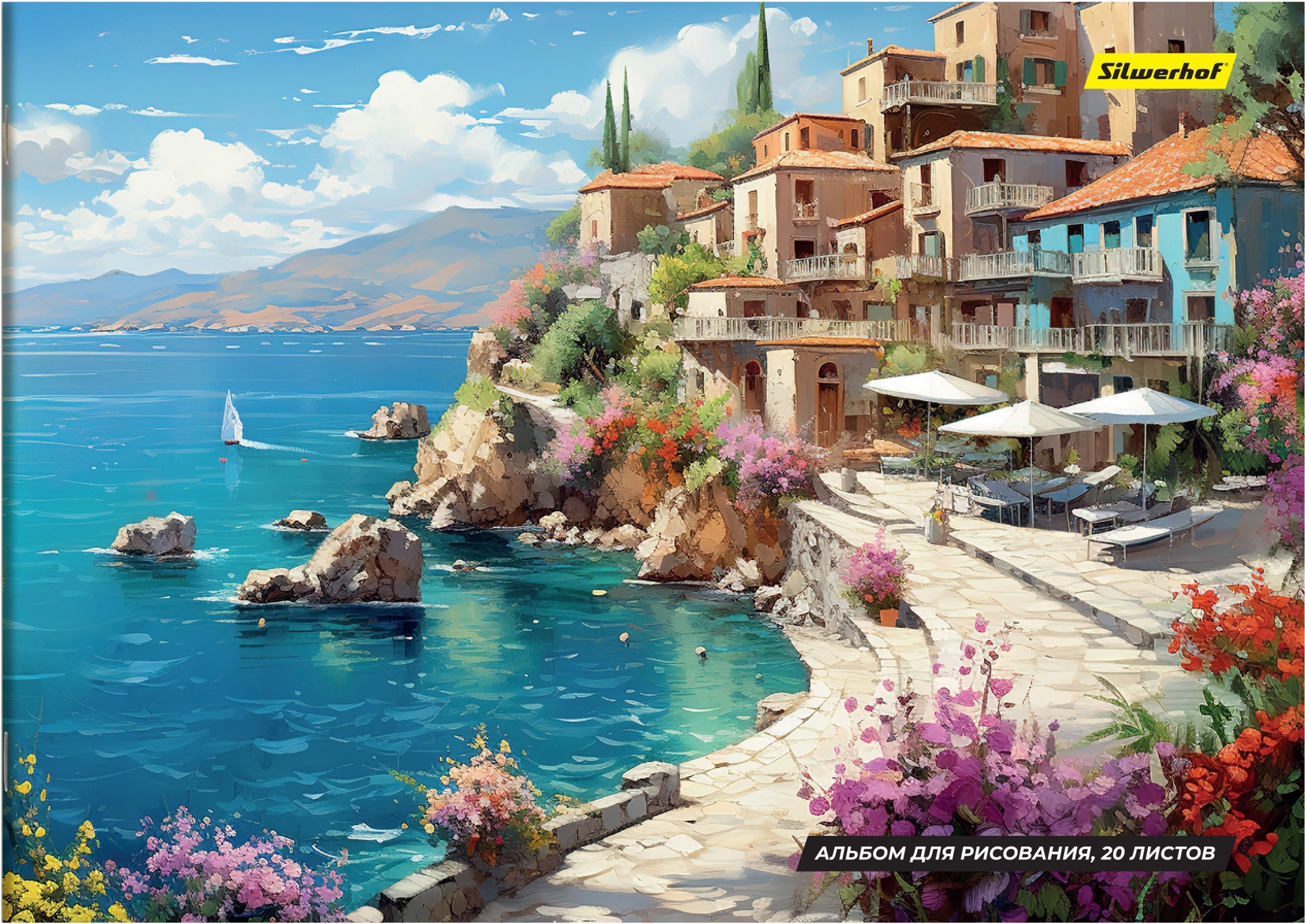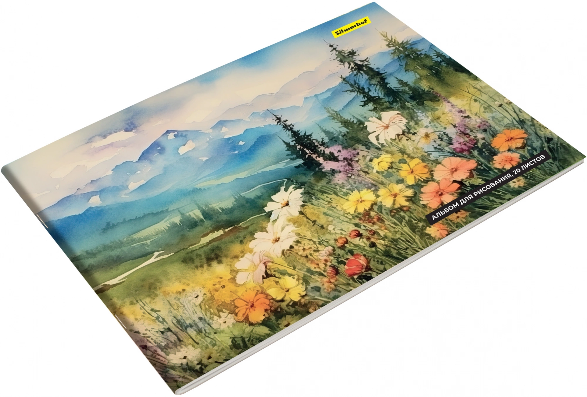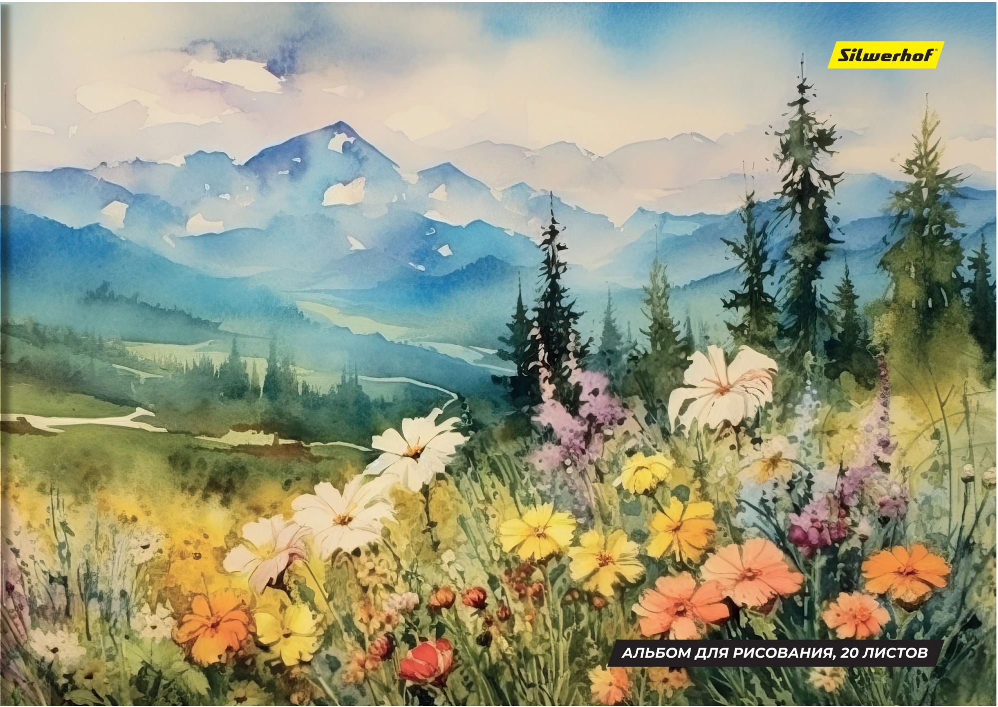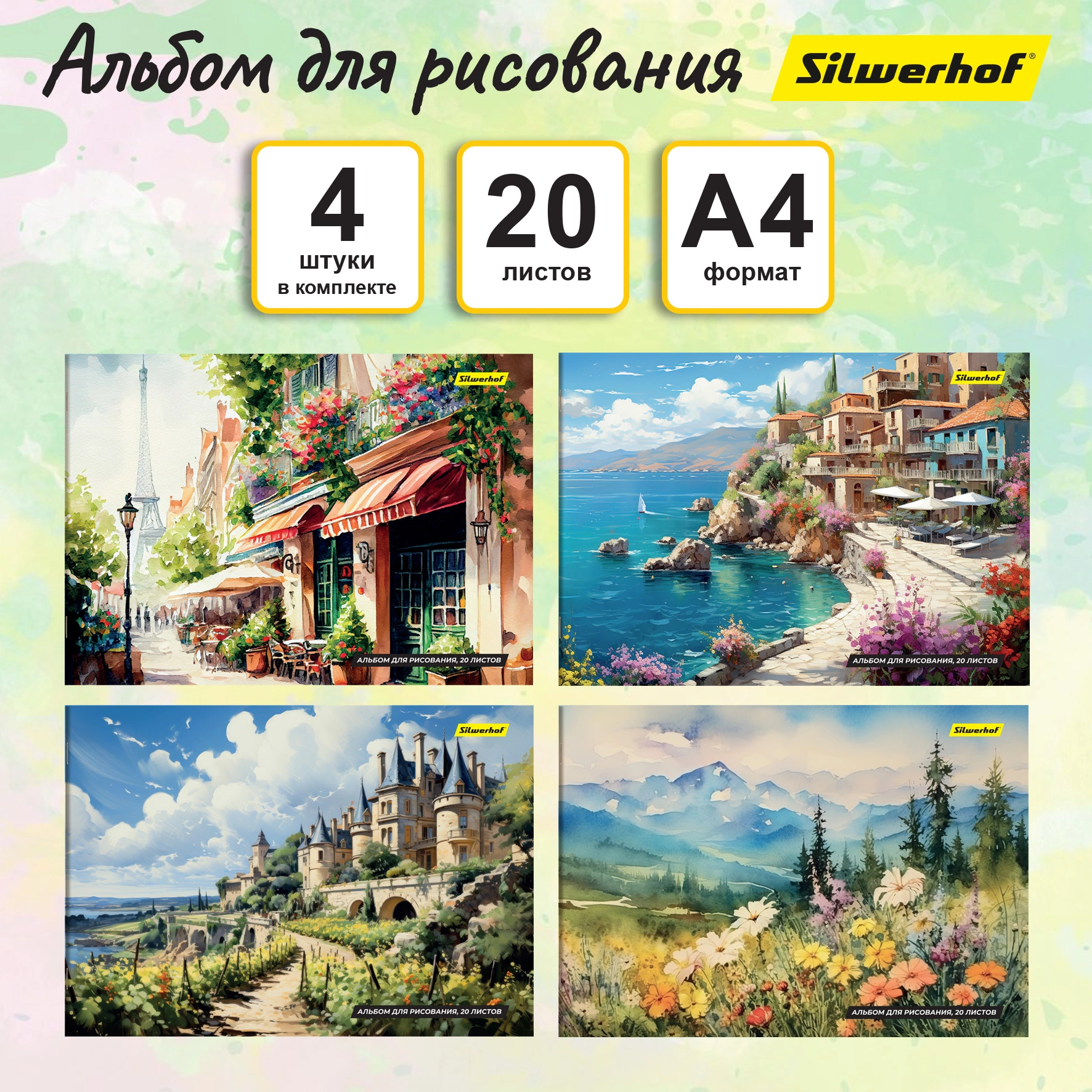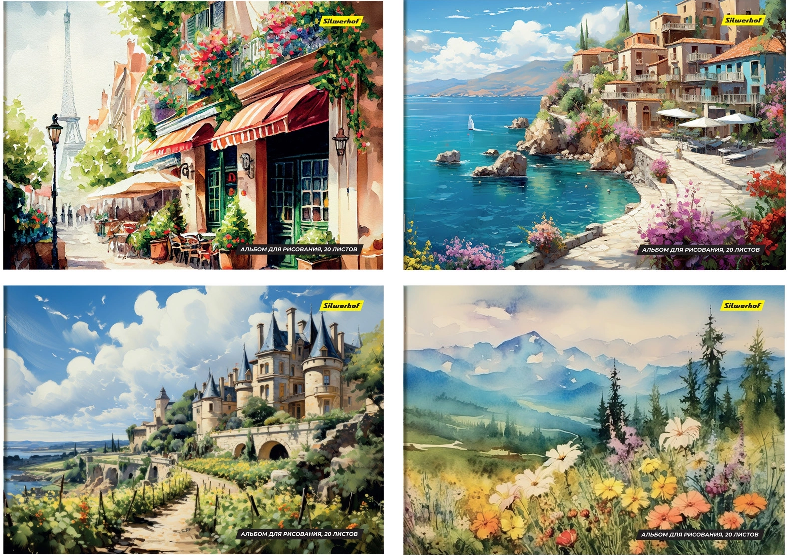 Альбом для рисования Silwerhof 20л. A4 Акварельные пейзажи 4диз. мел.картон скрепка (упак.:4шт)