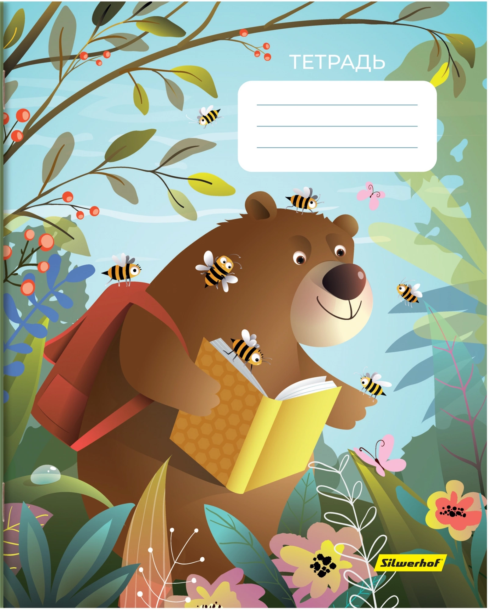 Набор тетрадей Silwerhof 18л. лин. A5 Лесные друзья 4диз. мел.карт. вод.лак скрепка (упак.:4шт)
