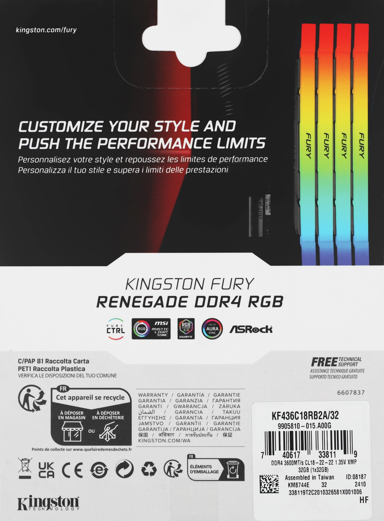 Память DDR4 32GB 3600MHz Kingston KF436C18RB2A/32