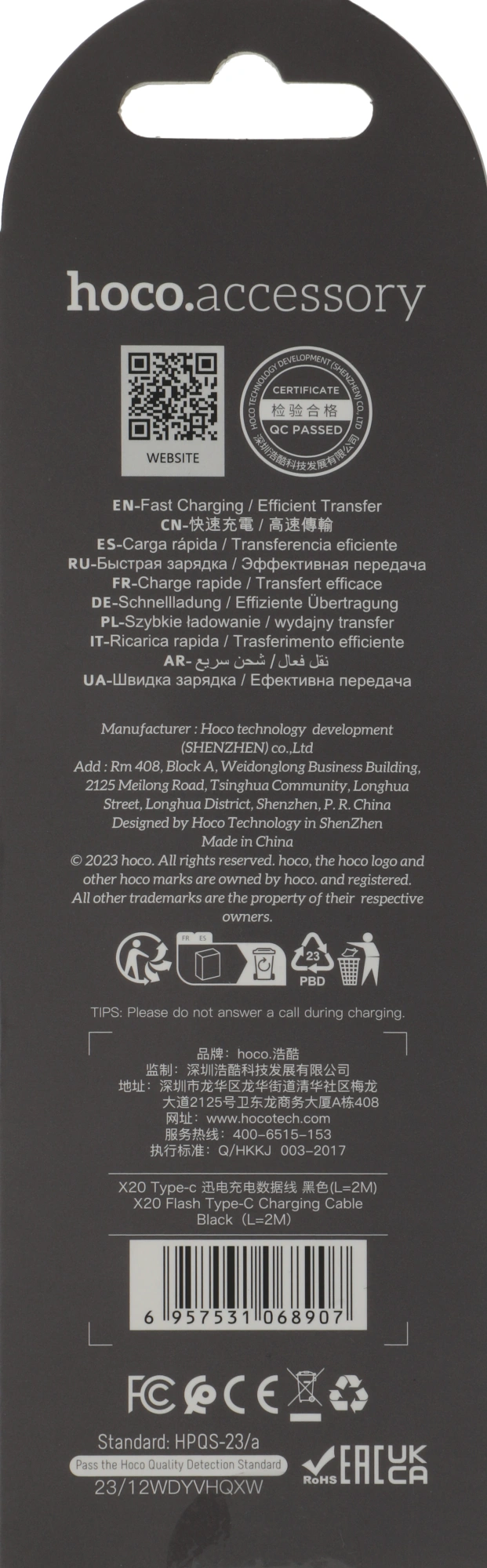 X20 USB (m)-USB Type-C (m) 2м черный коробка