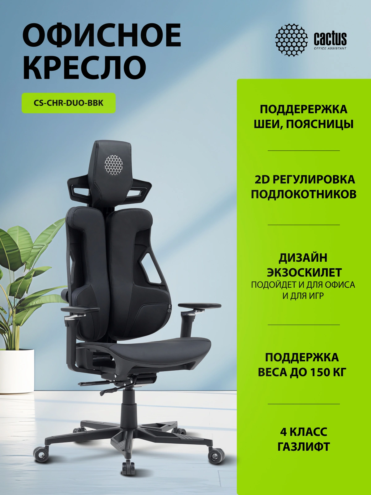 Кресло CS-CHR-DUO-BBK несомненно может претендовать на лидерство в категории мебели для геймеров. Модель отличается строгими и лаконичными линиями, которые превосходно вписываются как в домашний, так и в офисный интерьер. Уникальная форма лучей крестовины придаёт креслу дополнительную устойчивость и долговечность, обеспечивает комфорт и придает уверенности самым требовательным пользователям. Карбоновая спинка - это не только эстетический элемент, но и функциональное решение, которое придаёт креслу дополнительную прочность и лёгкость. Жёсткая форма и чёткие линии завершают общий дизайн, придавая ему современный и технологичный вид. 4D подлокотники обеспечивают четыре степени свободы, позволяя настроить их положение по вертикали, горизонтали, вперёд-назад и вращать вокруг своей оси. Это означает максимум гибкости для любого пользователя.