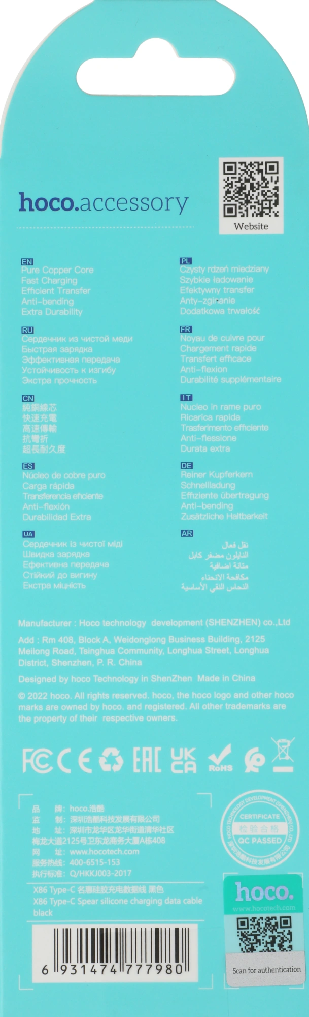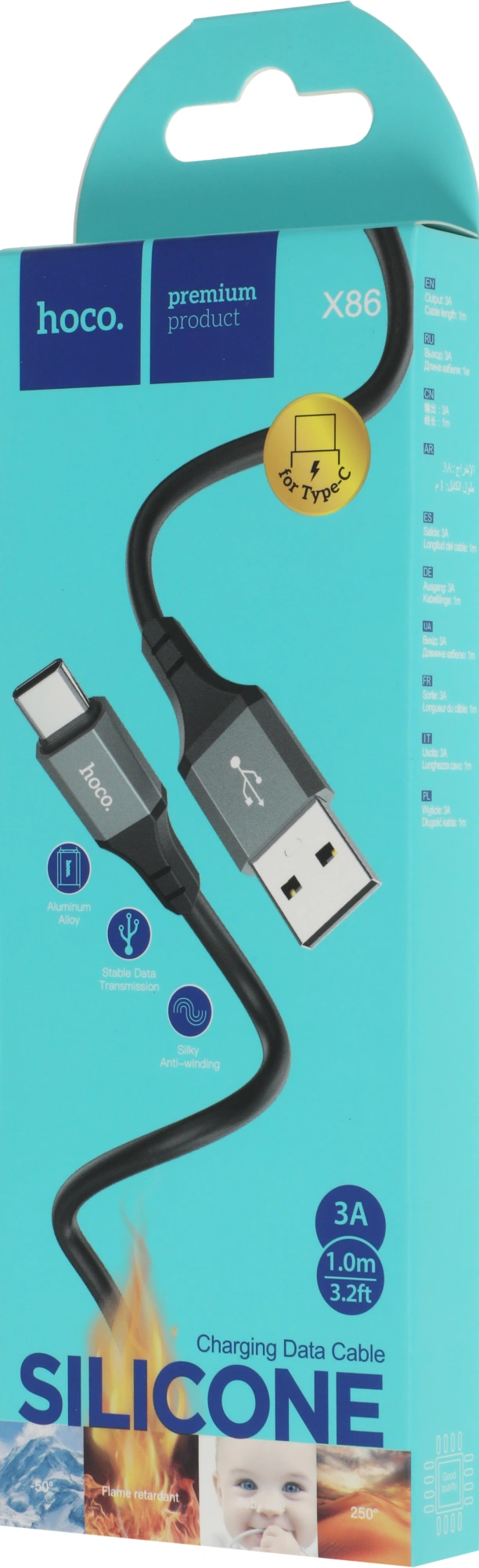 X86 Spear, кабель для зарядки и передачи данных USB на Type-C, 1м, силикон и алюминиевый сплав, ток до 3A