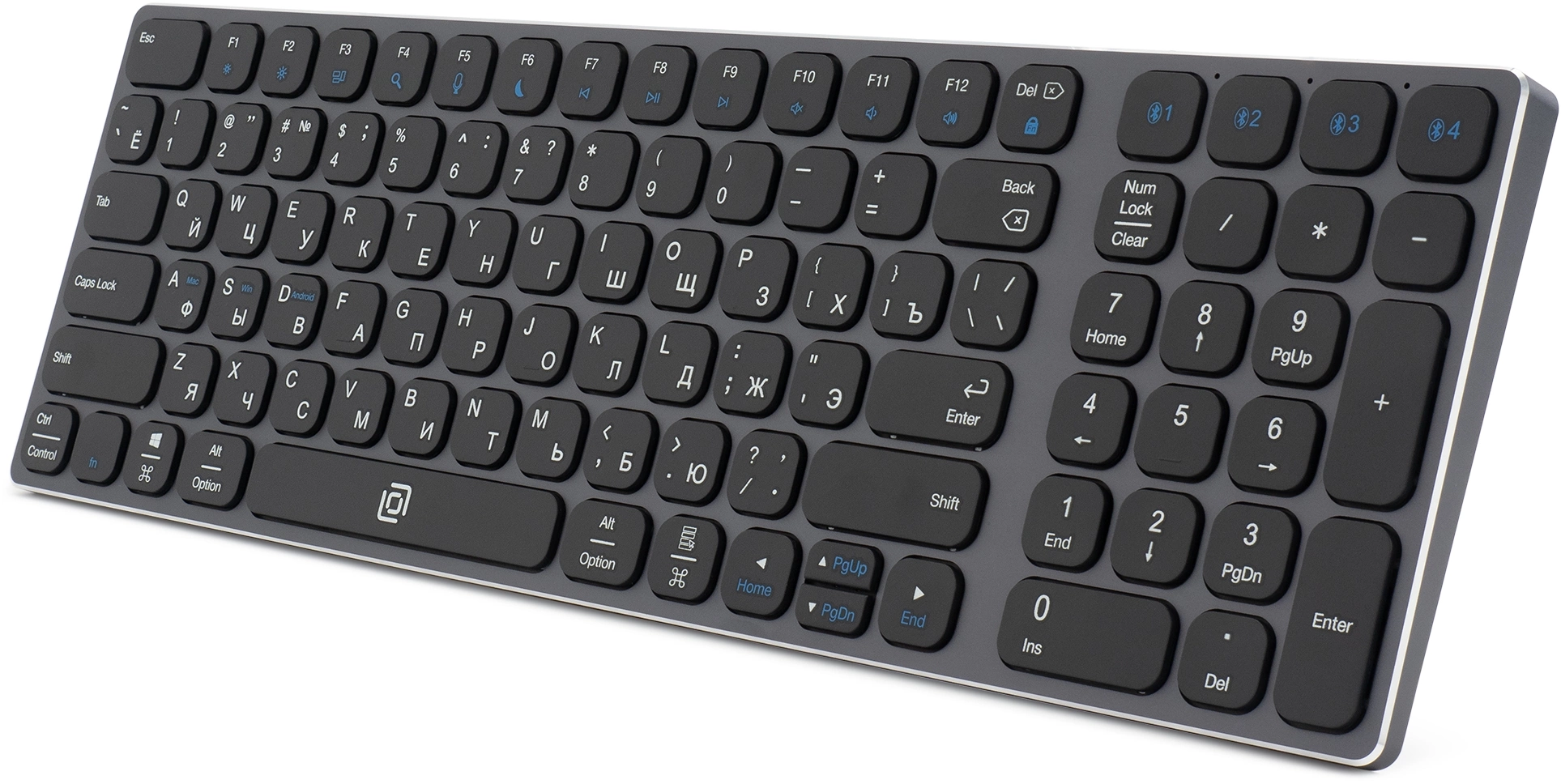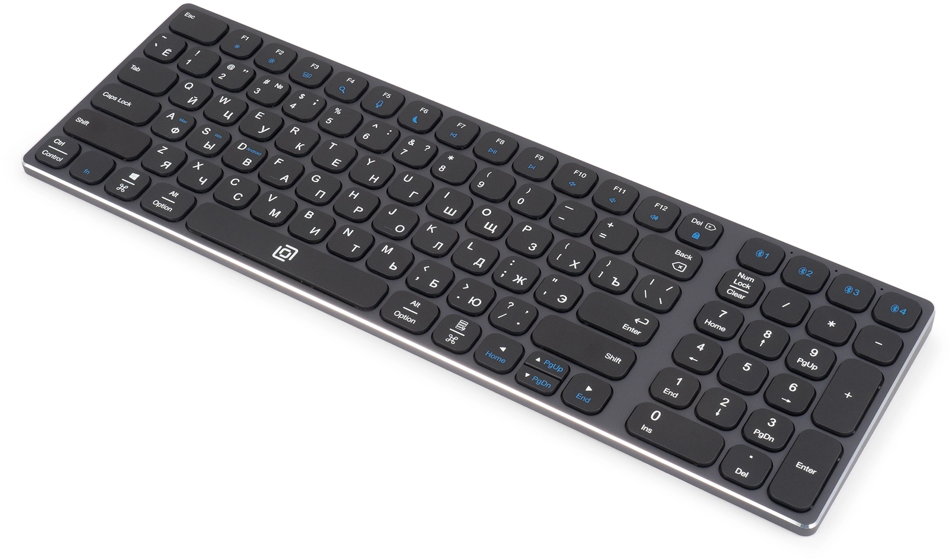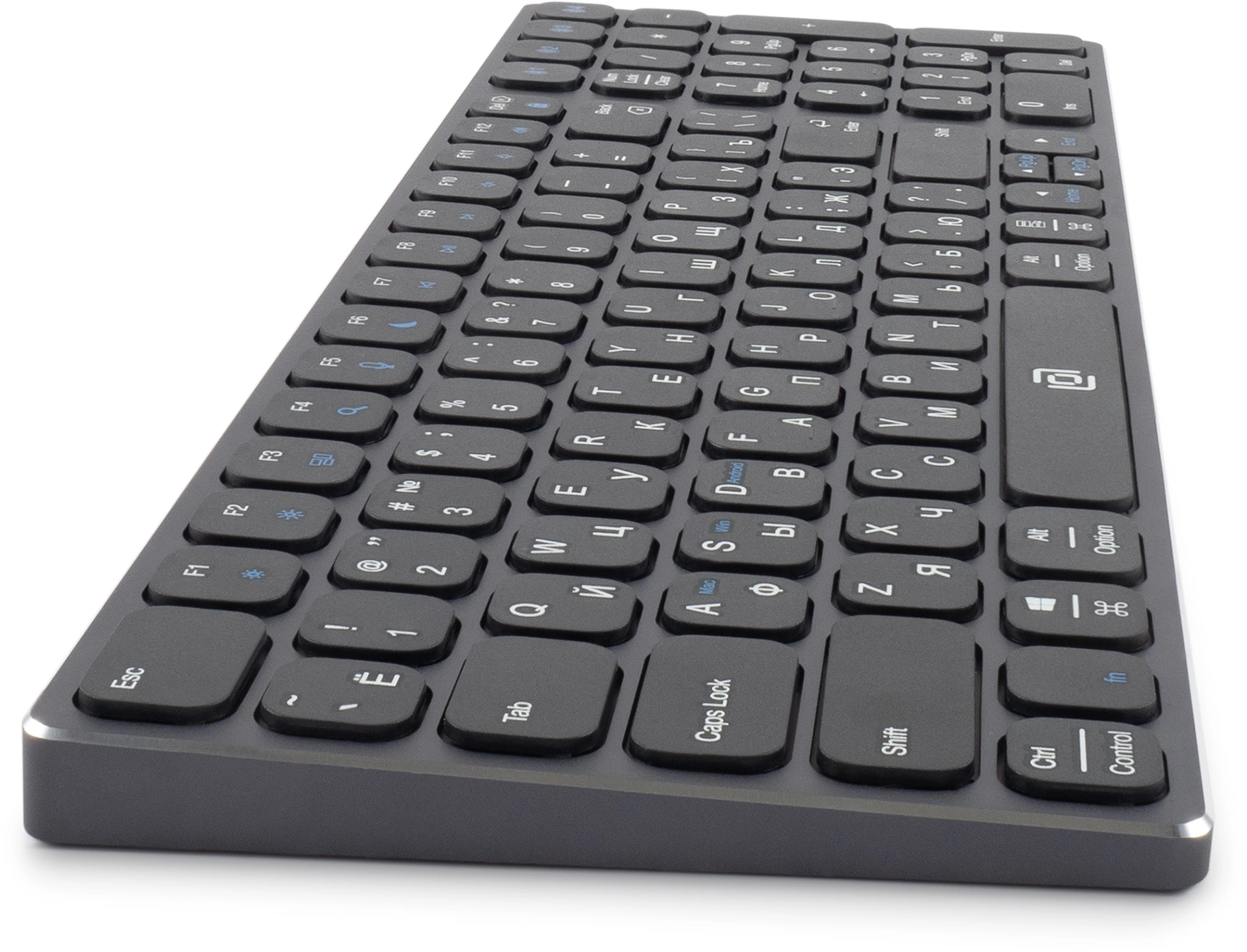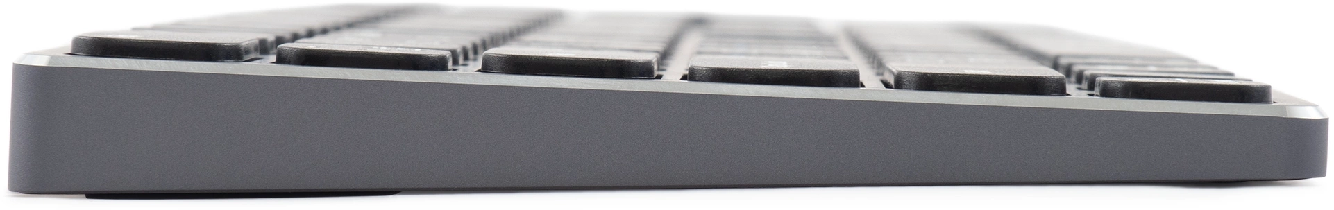 Ножничный механизм клавиш. Беспроводное подключение 2,4 Ггц + 3 канала Bluetooth. Аллюминиевый корпус.