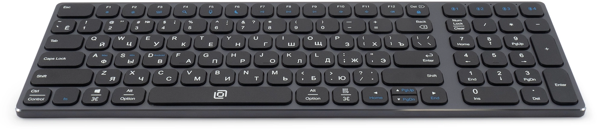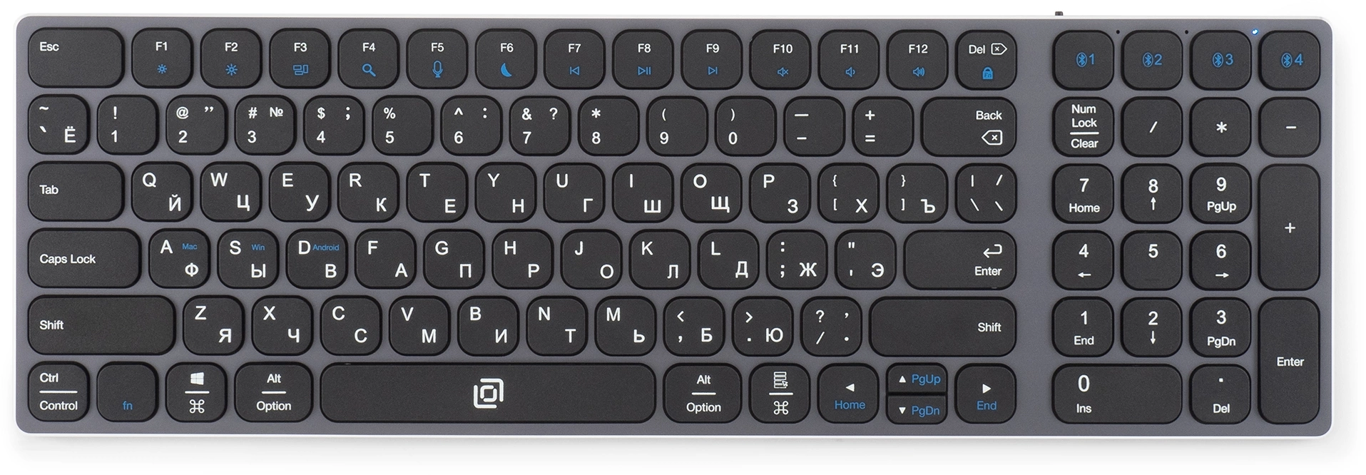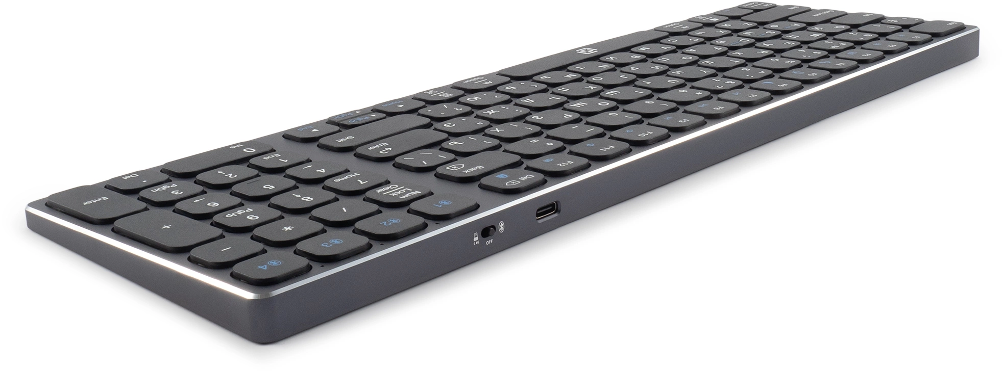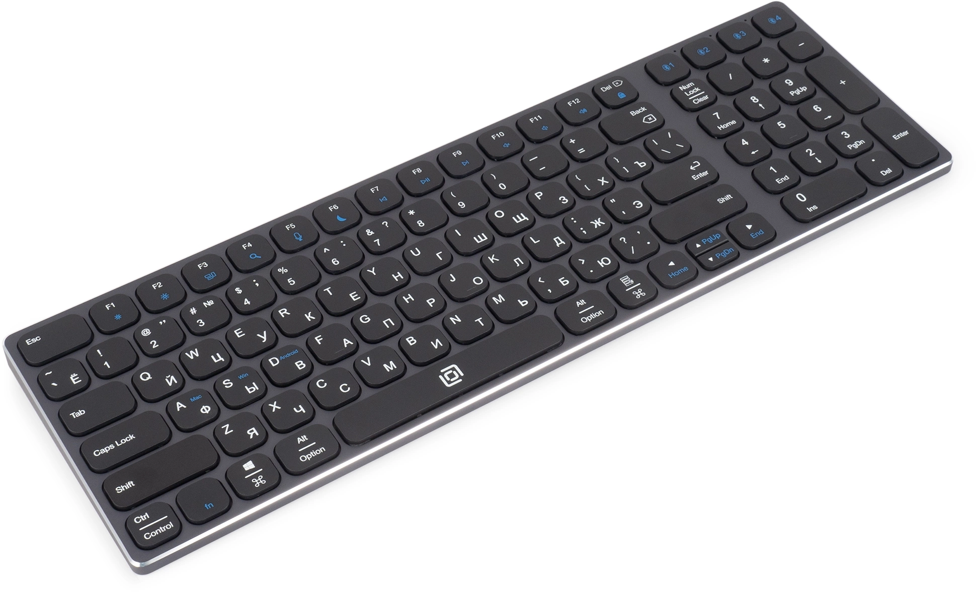 Ножничный механизм клавиш. Беспроводное подключение 2,4 Ггц + 3 канала Bluetooth. Аллюминиевый корпус.