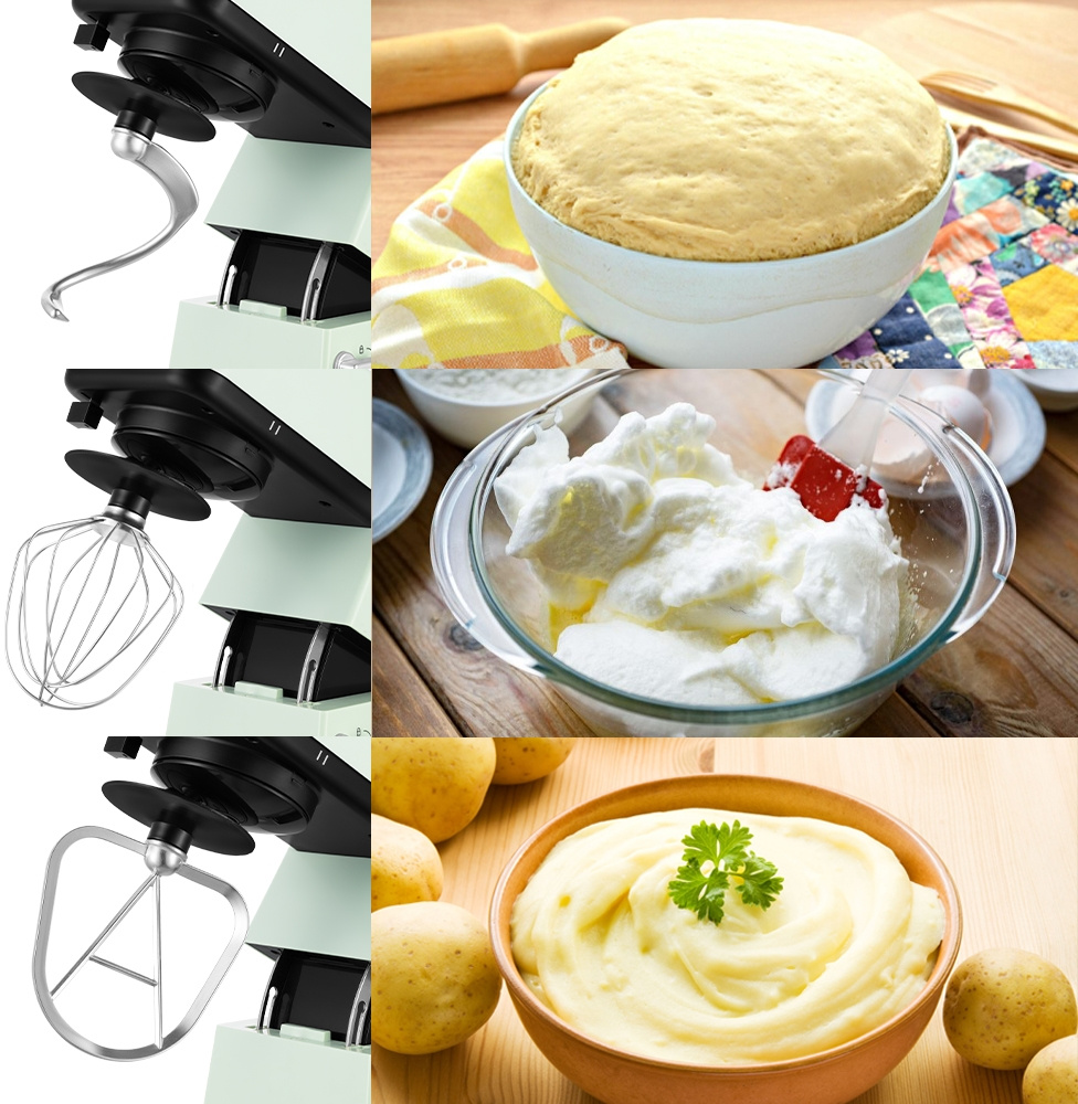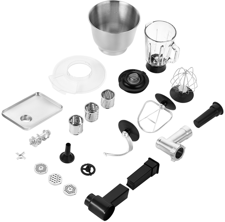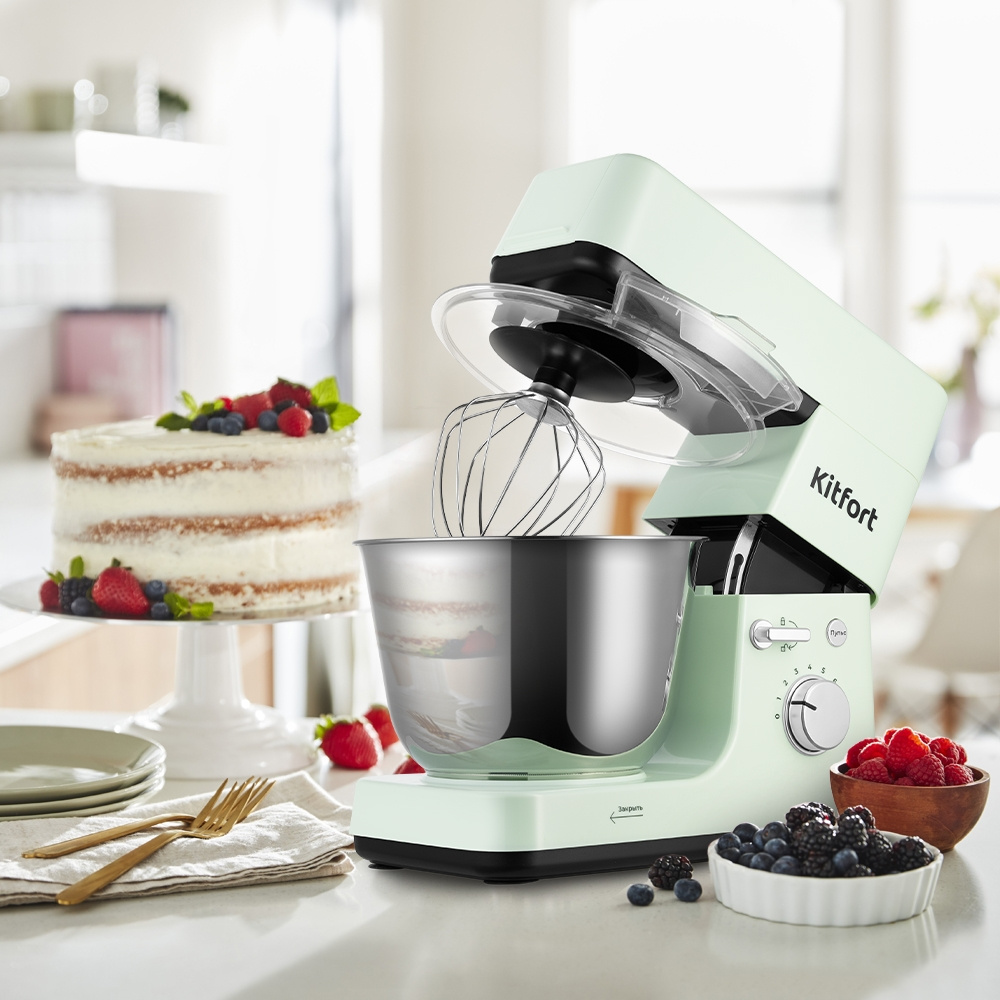 Миксер “4 в 1” КТ-3419 смешает ингредиенты, замесит тесто, взобьёт яичные белки или крем. В комплект также входят мясорубка, овощерезка и блендер. Мощность 1200 Вт и богатая комплектация позволяют ему выполнять функции 4 разных бытовых приборов.