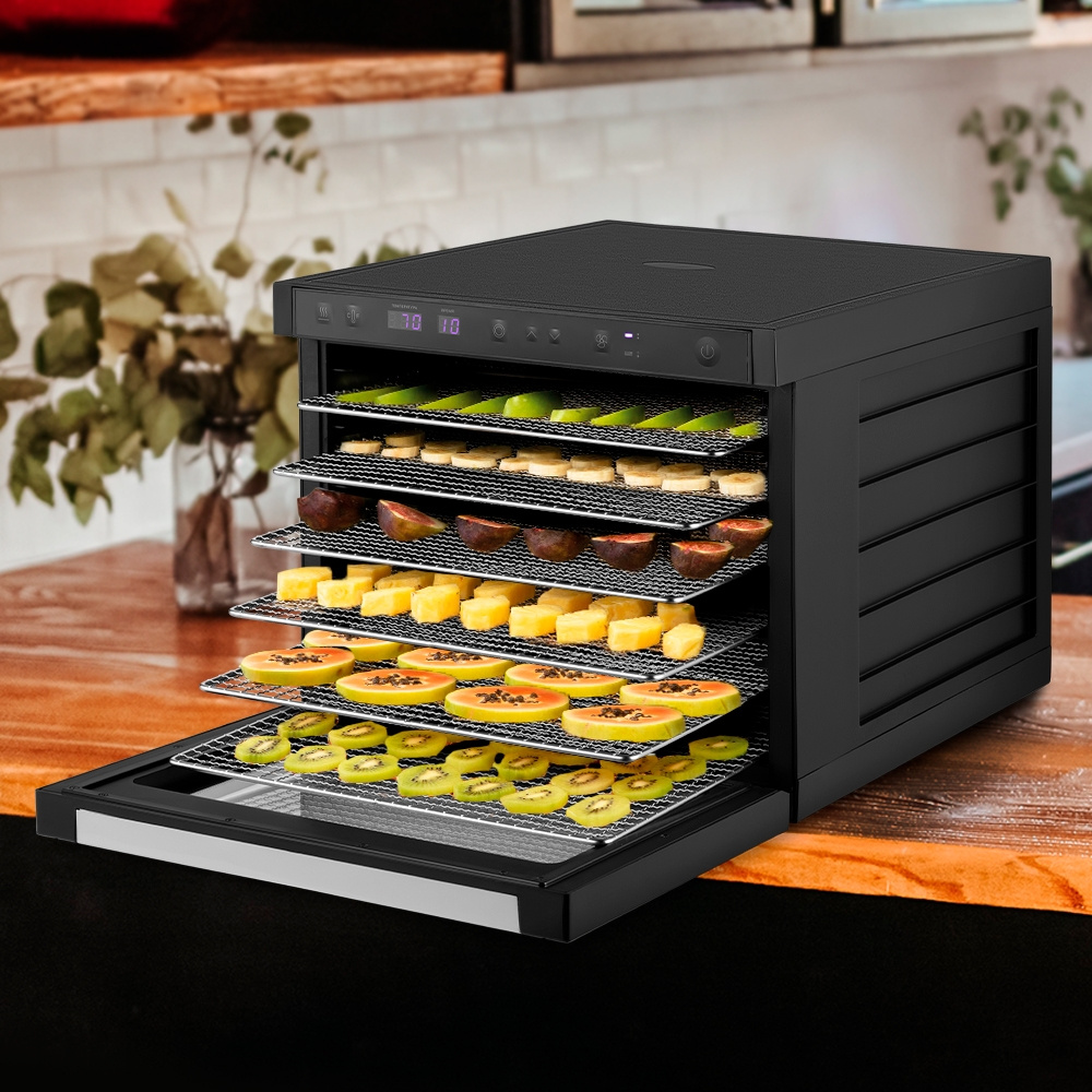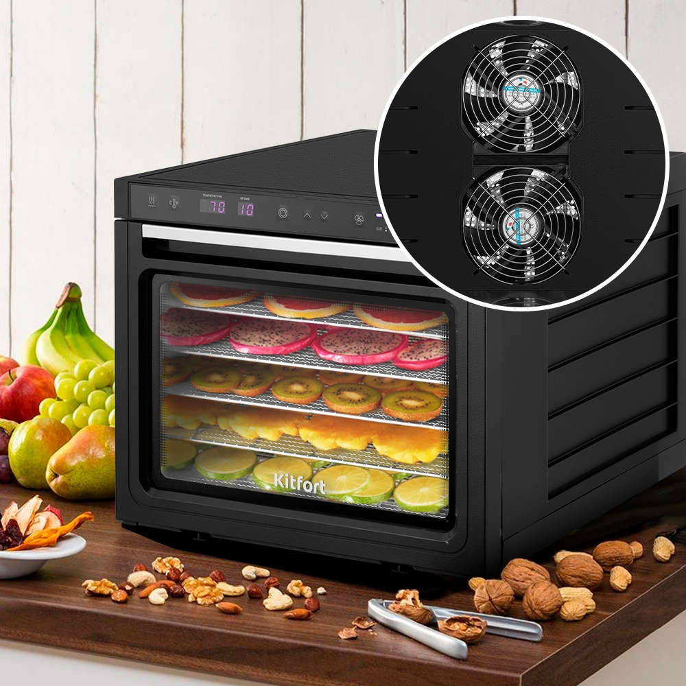 Электрическая сушилка предназначена для сушки овощей, фруктов, ягод, грибов, корнеплодов, трав, а также мяса и рыбы. Вместительная сушилка для овощей и фруктов КТ-1962 сохранит любимые фрукты и овощи полезными круглый год!