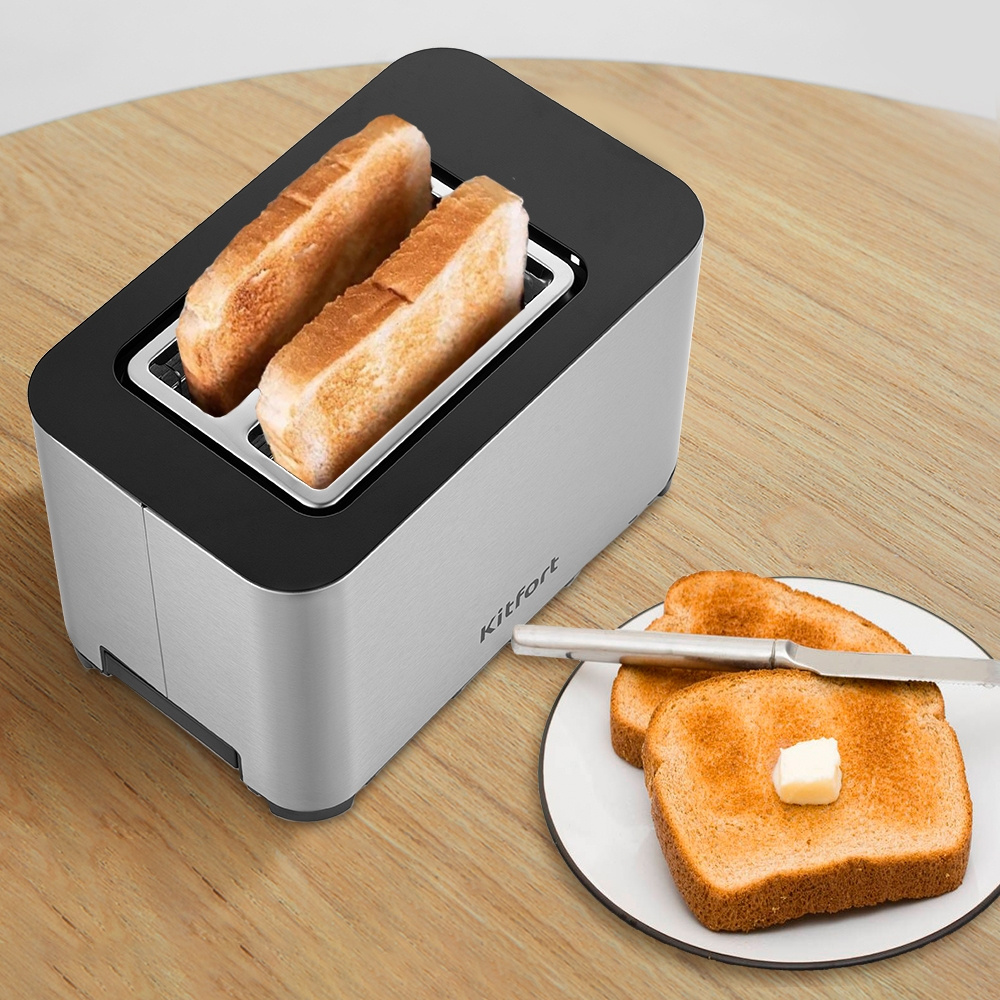 Тостер Kitfort КТ-6201 создан для любителей ароматного и хрустящего, поджаренного хлеба. Прибор позволяет быстро поджарить тосты для горячих бутербродов, сэндвичей, а также бейглы, круассаны, гренки и хлебцы для закусок.