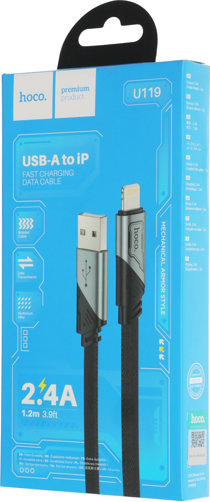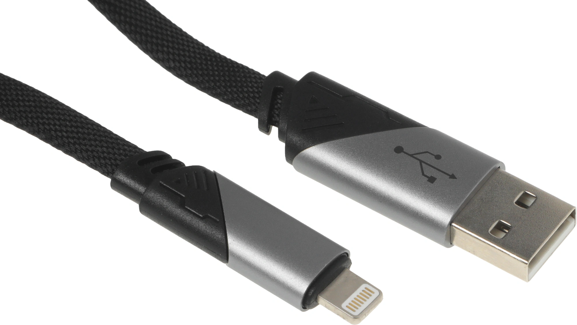USB (m)-Lightning (m) 1.2м черный коробка плоский