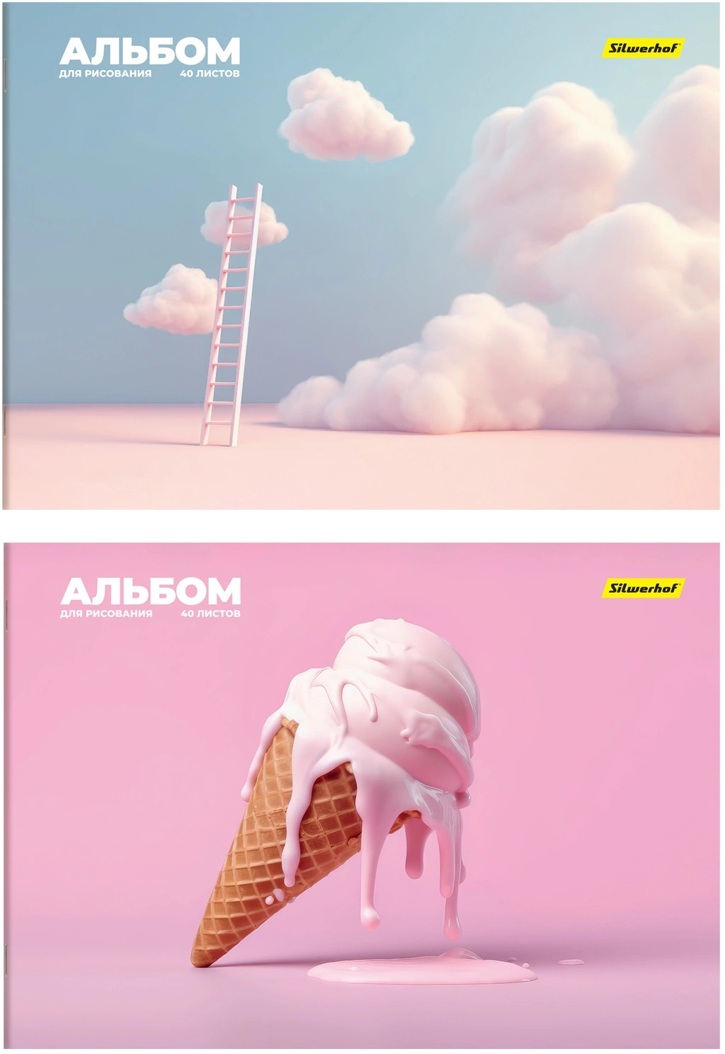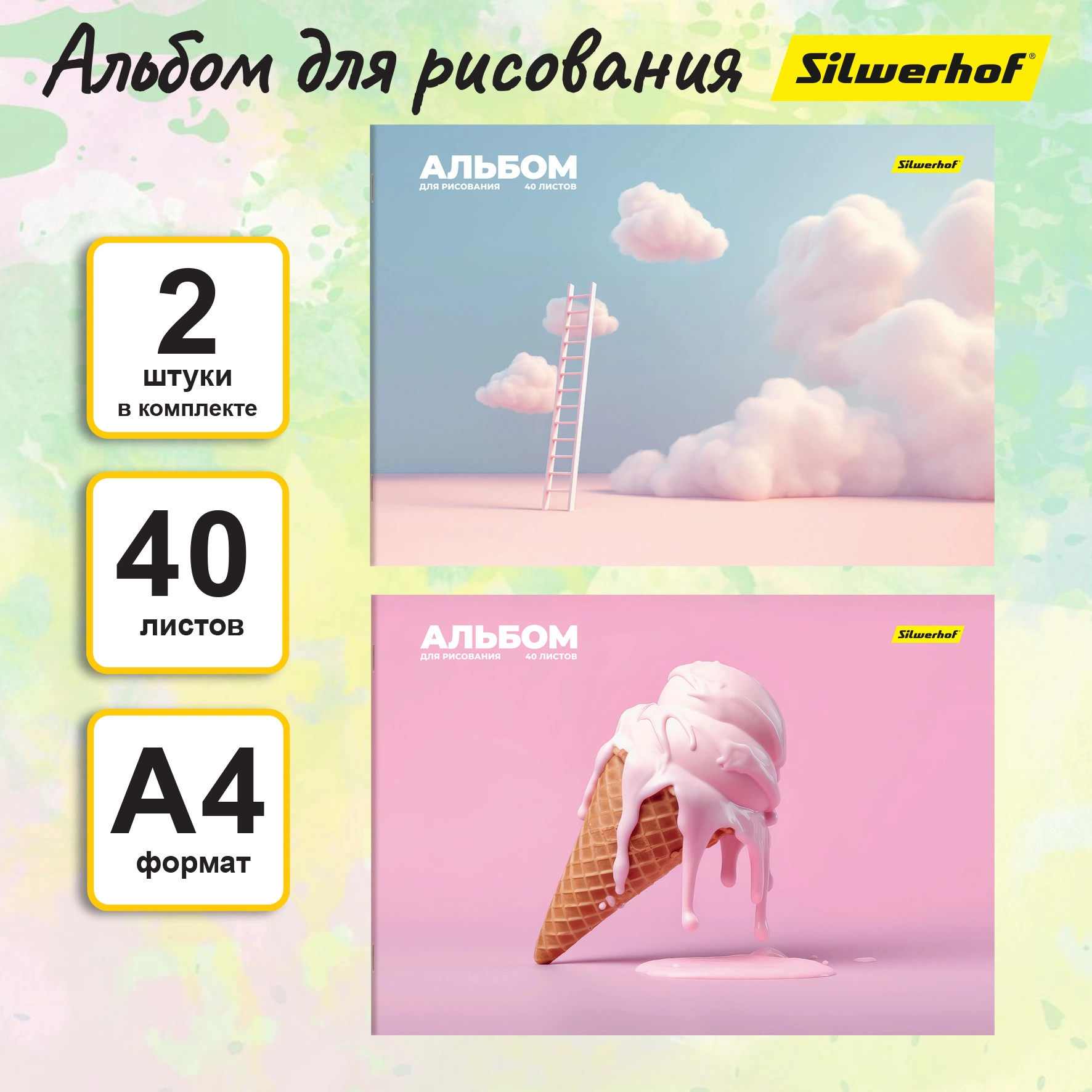 Альбом для рисования Silwerhof 40л. A4 Нежность 2диз. мел.картон скрепка (упак.:2шт)
