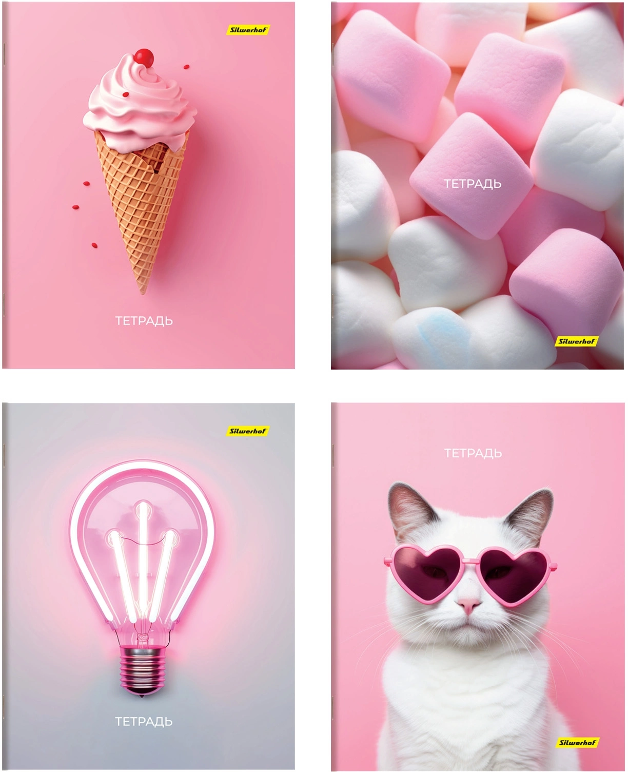 Набор тетрадей Silwerhof 48л. лин. A5 Нежность 4диз. мел.карт. вод.лак скрепка (упак.:4шт)
