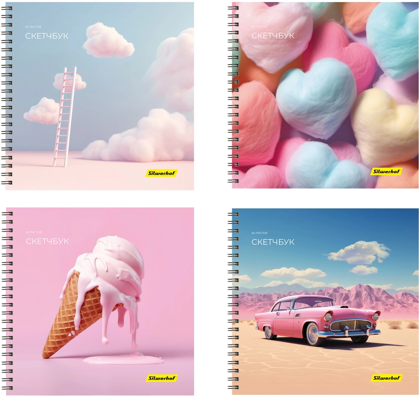 Скетчпад Silwerhof 20л. 190x190мм Нежность 4диз. гребень