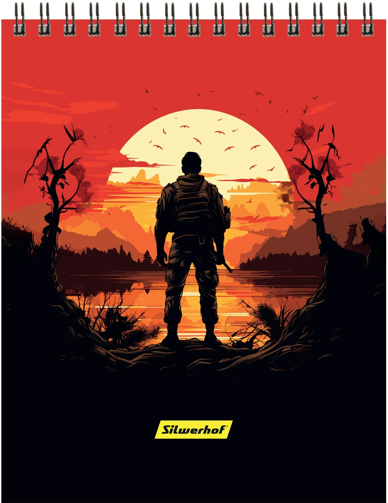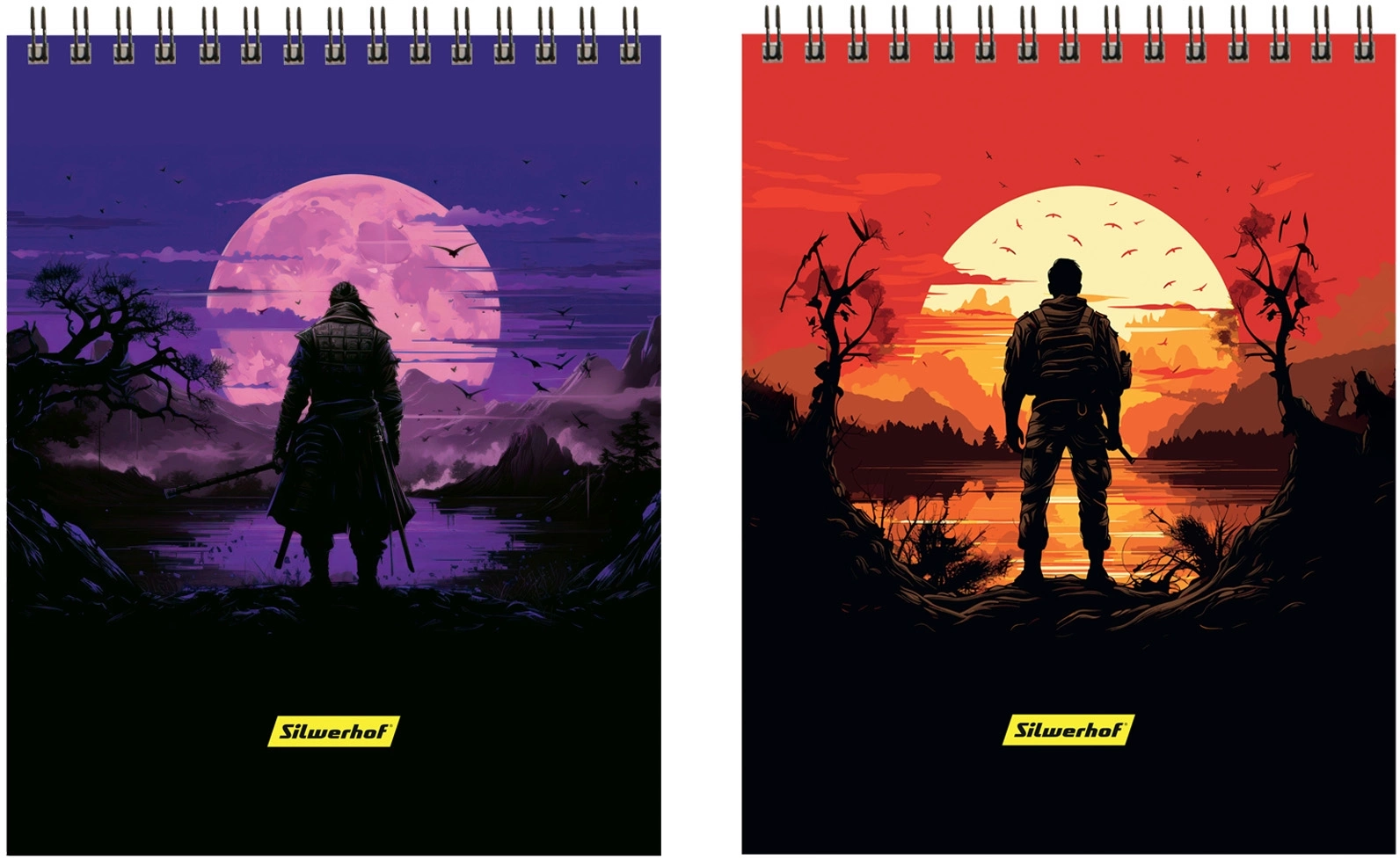 Блокнот Silwerhof A5 обложка картон 60л клетка гребень Одинокий воин (2шт)