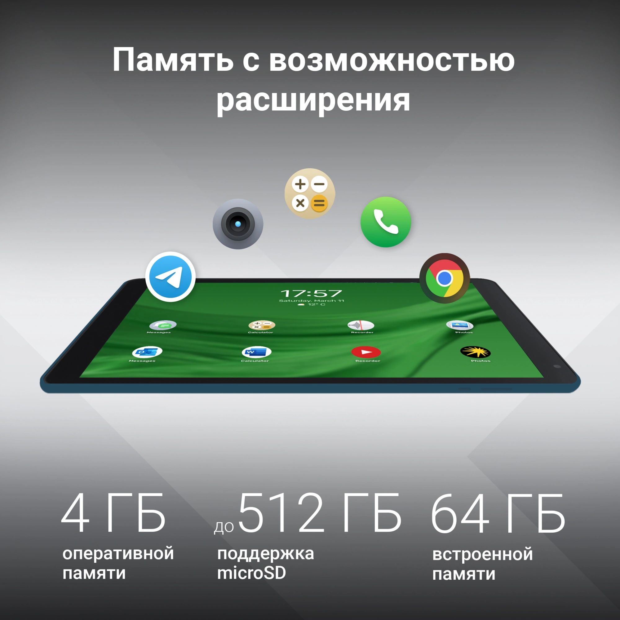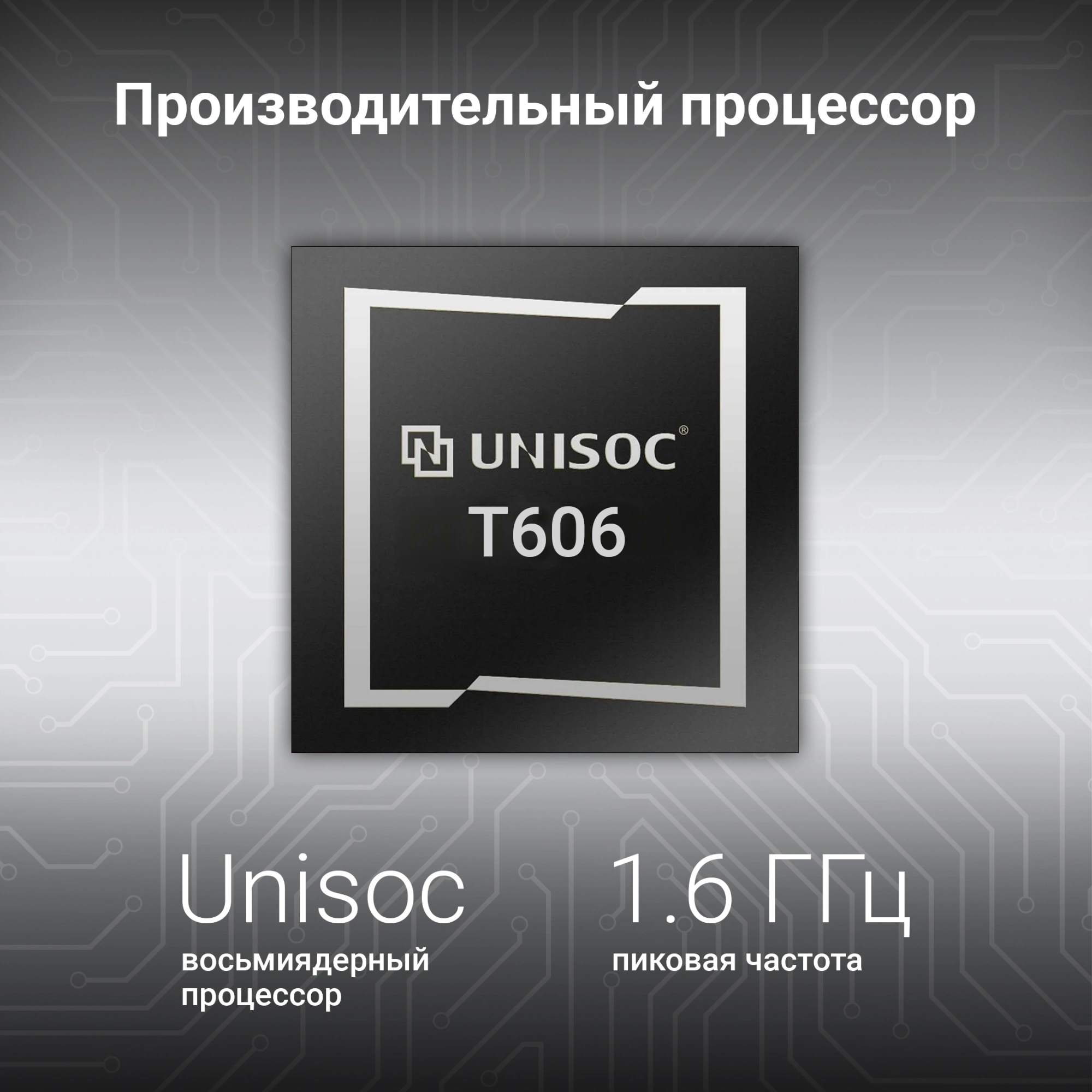 Модель работает на основе 8-ядерного процессора Unisoc T606 с частотой 1.6 ГГц, который обеспечивает быструю и ровную работу вместе с 4 ГБ оперативной памяти. Объем встроенной памяти составляет 64 ГБ, при необходимости ее можно расширить microSD-картой объемом до 512 ГБ. За отрисовку графики отвечает графический контроллер AMD Mali-G57 MP1.
