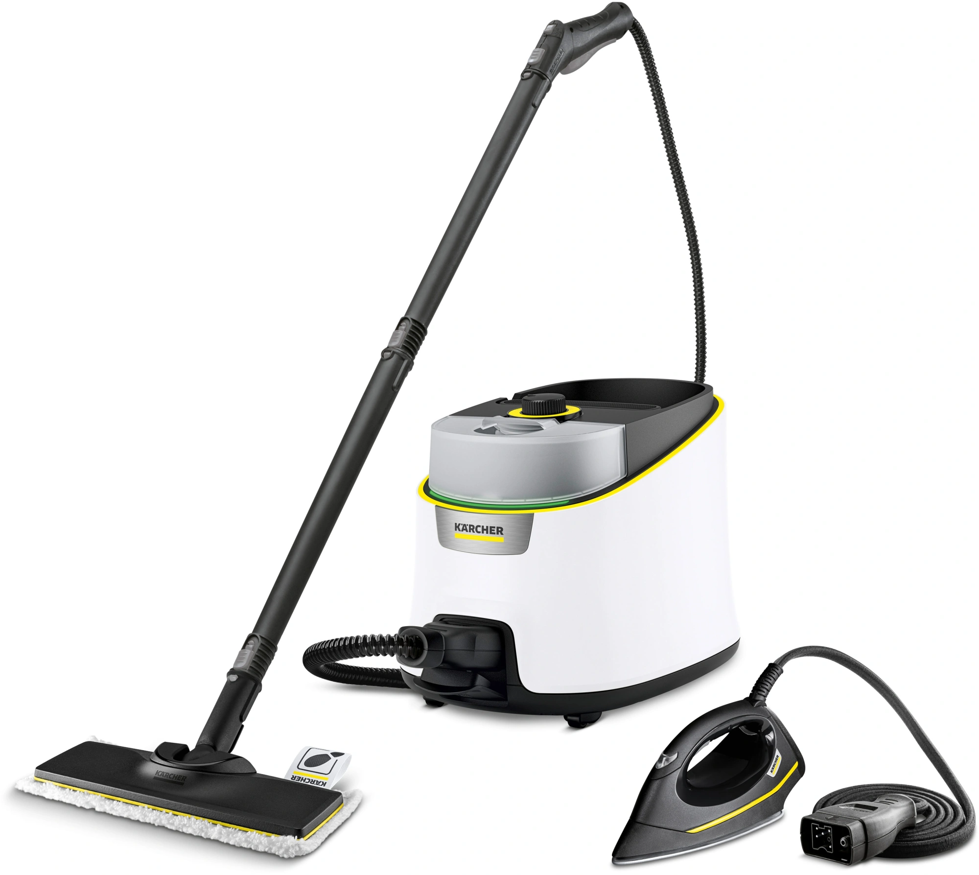 Паровой утюг EasyFinish. Комплект для уборки пола EasyFix: 2 удлинительные трубки (2x0,5 м), насадка для пола с салфеткой. Ручная насадка. Микроволоконная обтяжка для ручной насадки, 1 шт. Точечное сопло. Круглая щётка (малая), 1 шт. Плоская щётка, 1 шт.