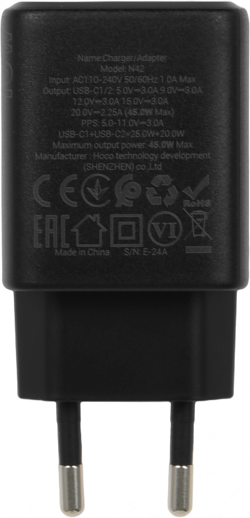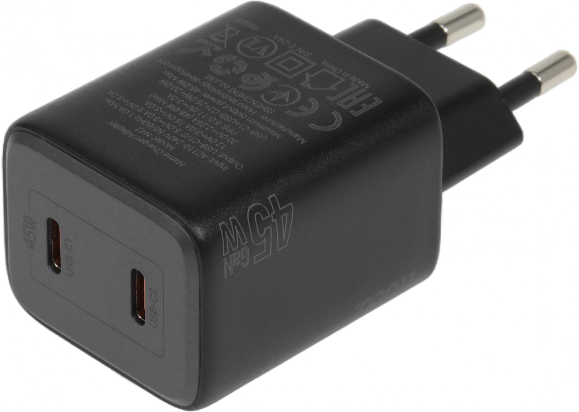 Зарядное устройство с двумя Type-C портами.