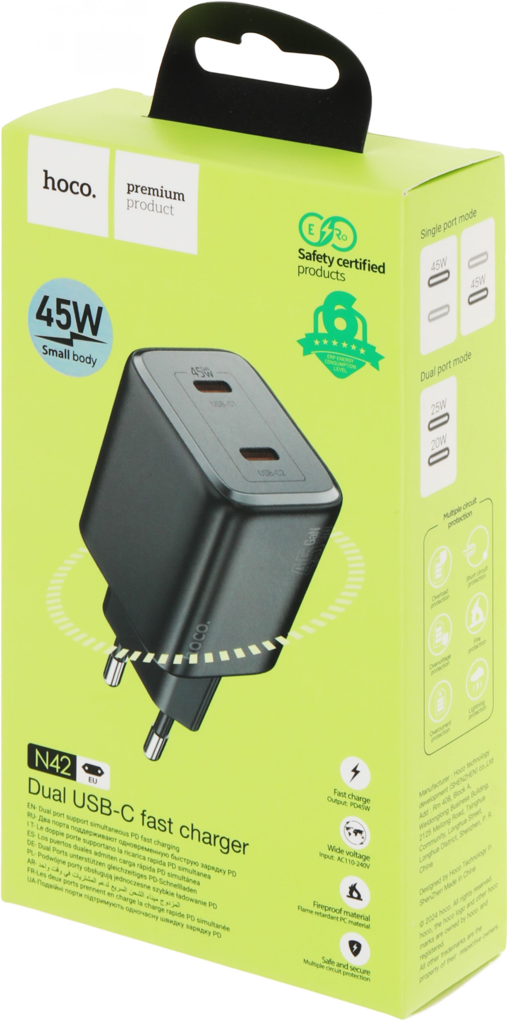 Поддержка протоколов быстрой зарядки для PD45W / PPS / QC3.0 / FCP / AFC.