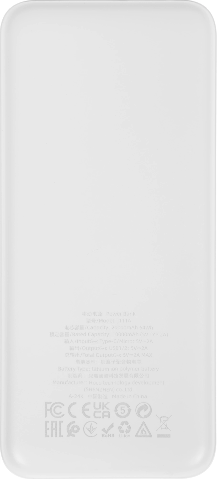 Портативный аккумулятор HOCO J111A Smart, 2A, 20000 мА/ч, белый