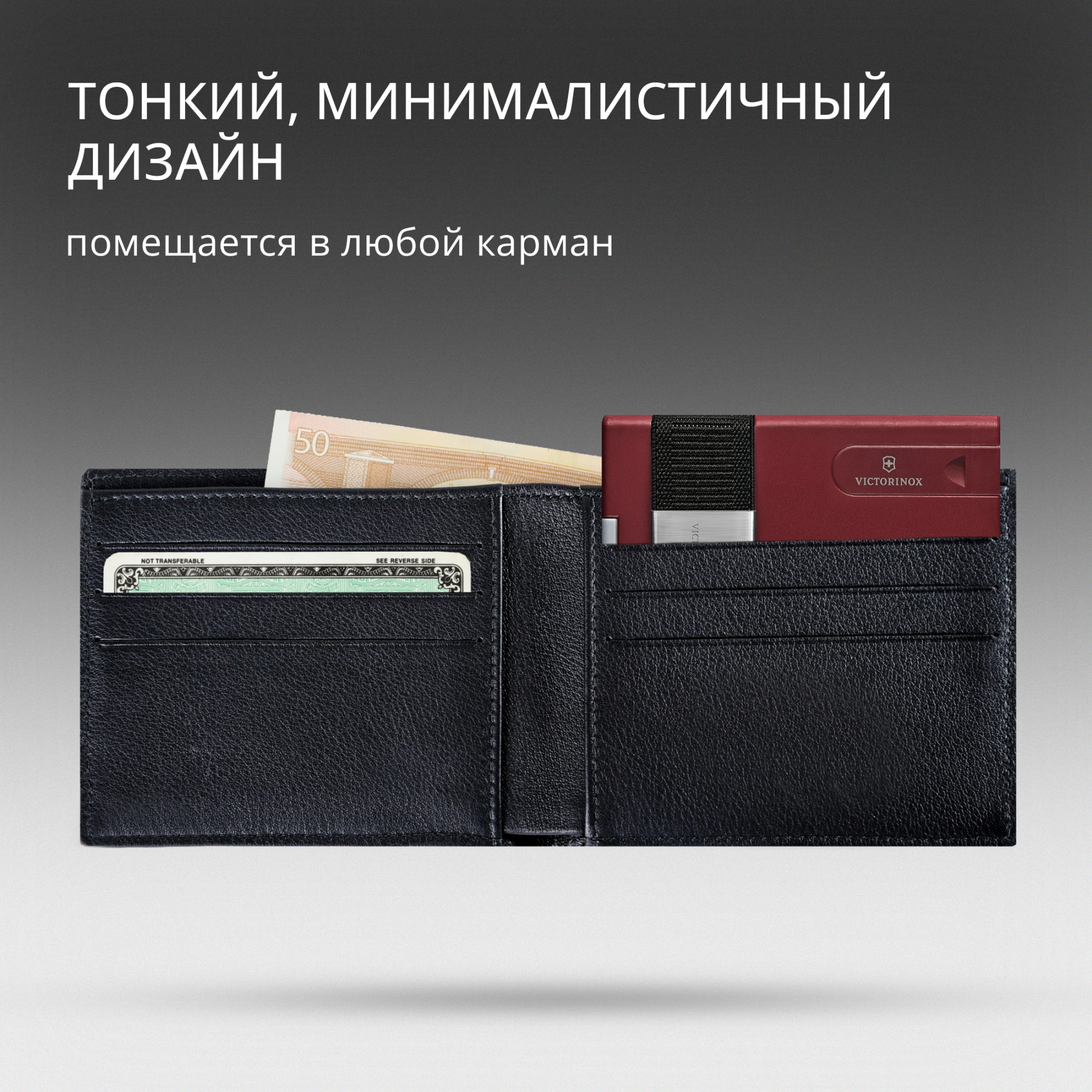 имеет запатентованную систему скольжения, которая позволяет легко вставлять карты и доставать одним движением