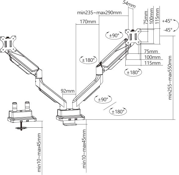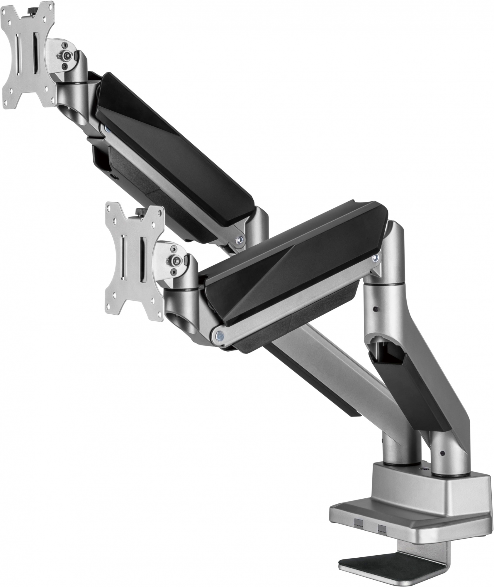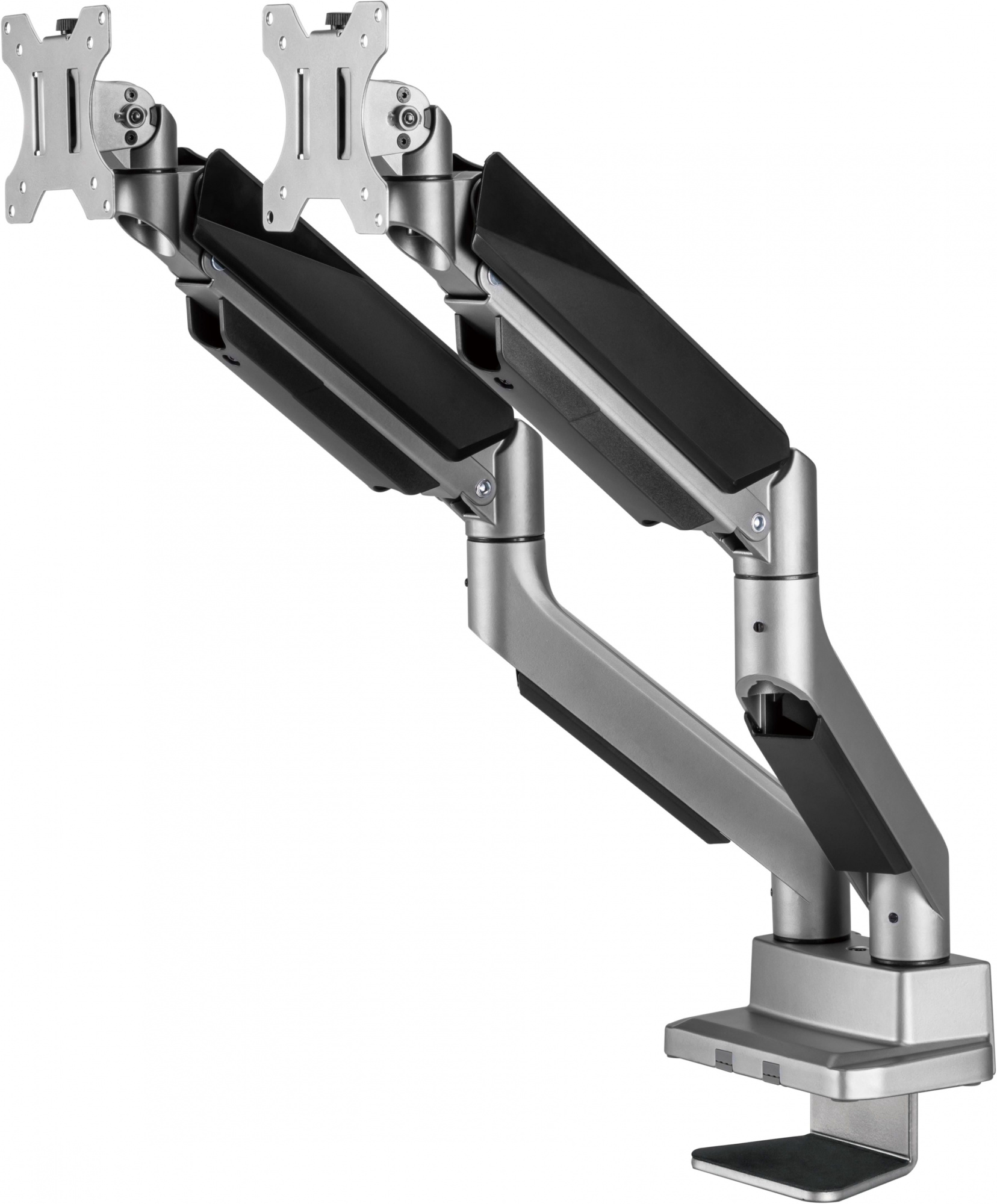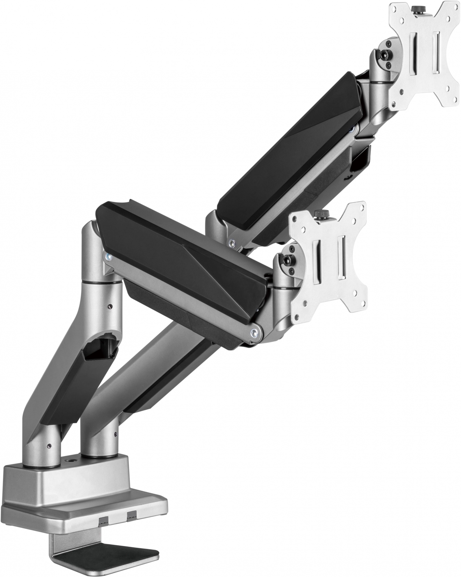 Настольный кронштейн для монитора с системой газ-лифт. Конструкция со свободным наклоном позволит легко регулировать наклон вперед или назад для лучшего обзора и уменьшения бликов.