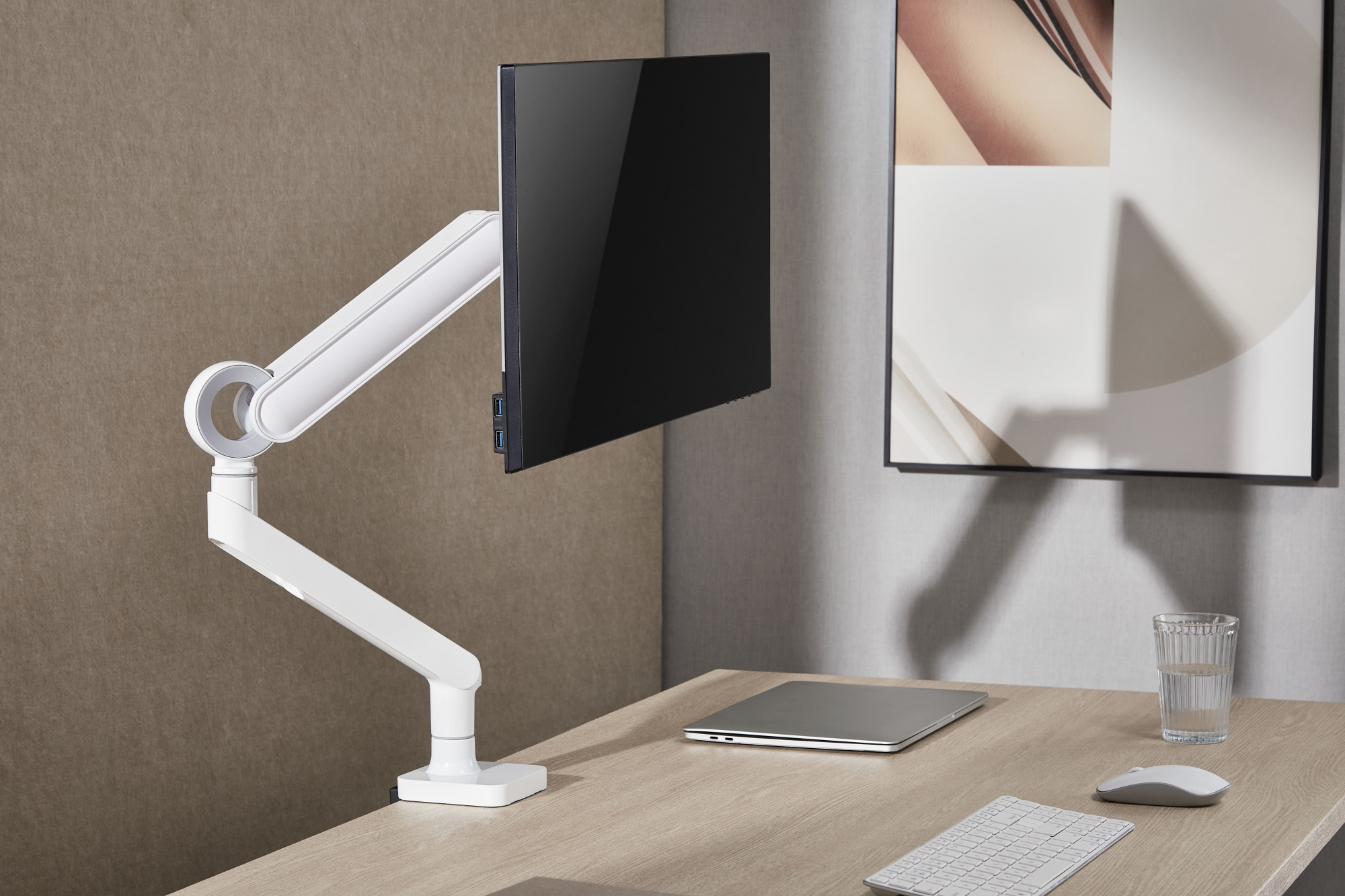 Настольный кронштейн для монитора с системой газ-лифт. Встроенный пружинный механизм натяжения поможет для идеальной регулировки веса.